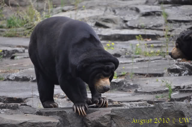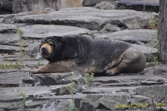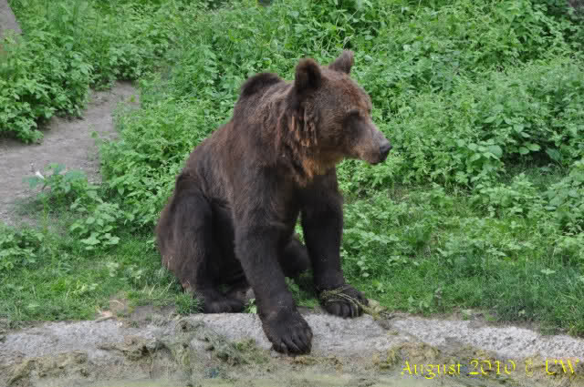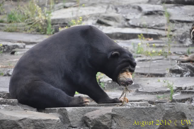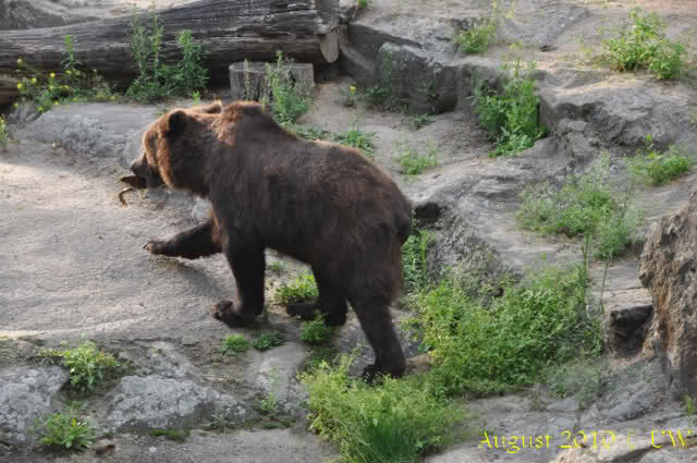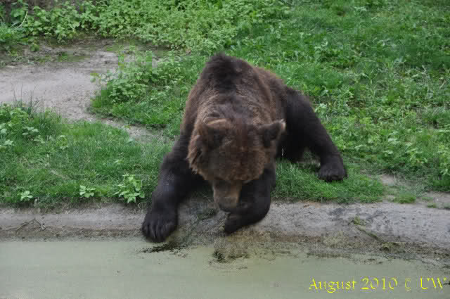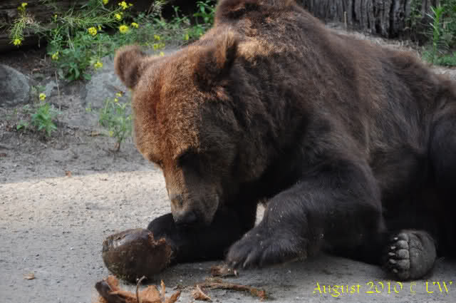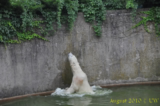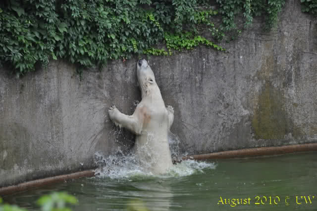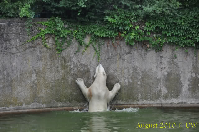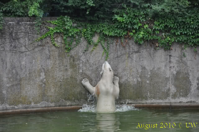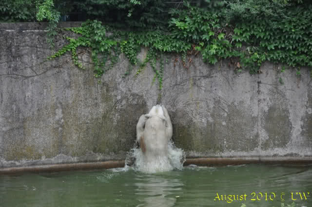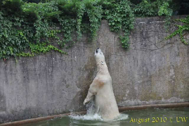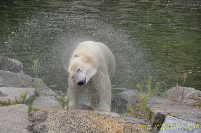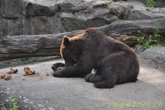 Die folgenden Bilder sind vor der Fütterung aufgenommen, die Bären spielten miteinander, holten sich herunterhängende Zweige und fanden im Wasser auch eine Kokosnuss.