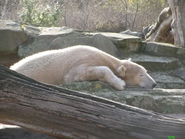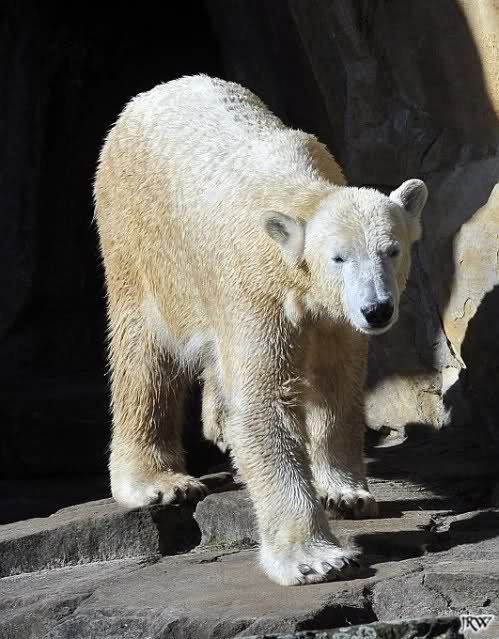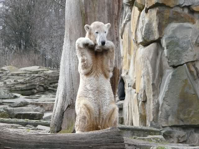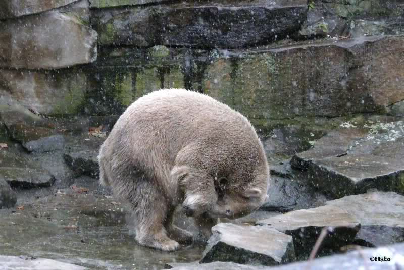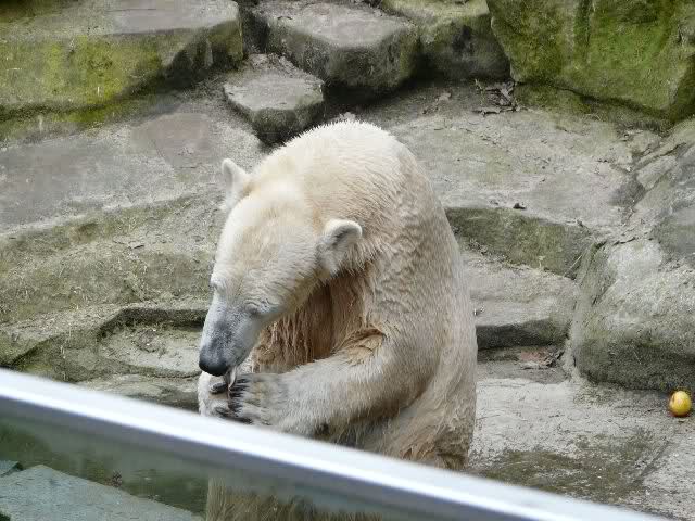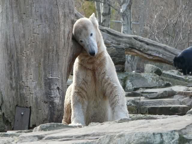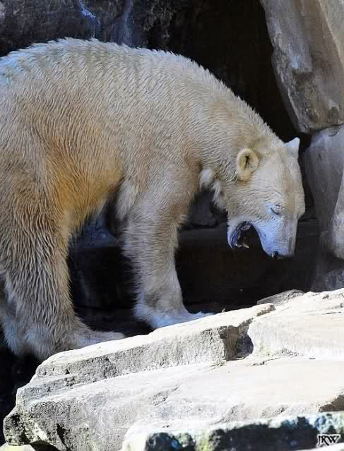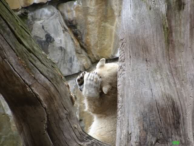 Hmm Knut, kann es sein, dass Dein "Kinderarzt" Dich inzwischen auch im Gehege der Grossen vermutet? Dort gibt es vier Bären, die sich zwischen den Fütterungen sehr malerisch auf die Felsen drapieren.