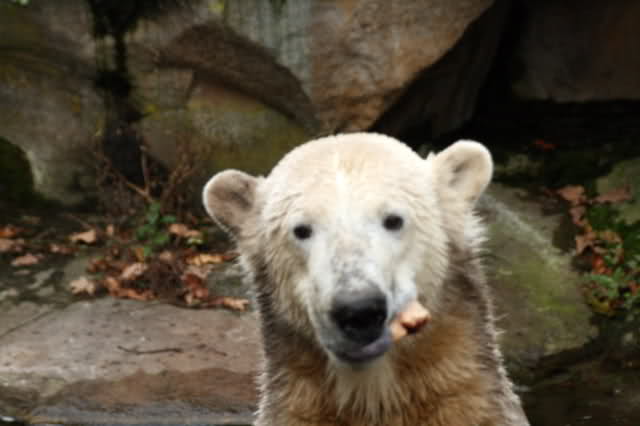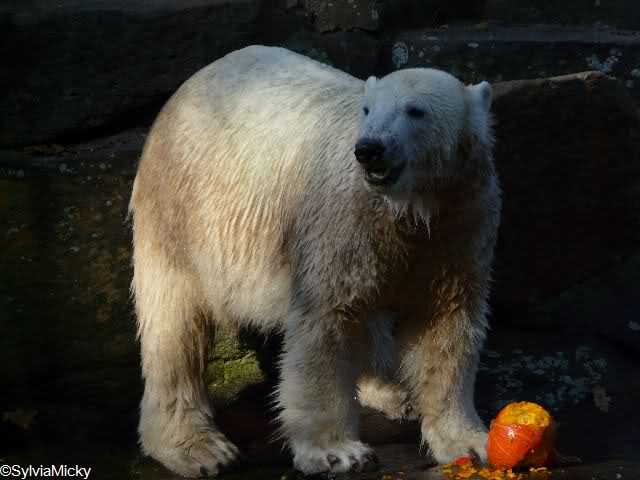 und als ich neulich in Berlin war, konnte ich Knuti bewundern, als er sich eine leckere Fleischmahlzeit fing und verspeiste. Etwas unscharf das Bild, aber immerhin.