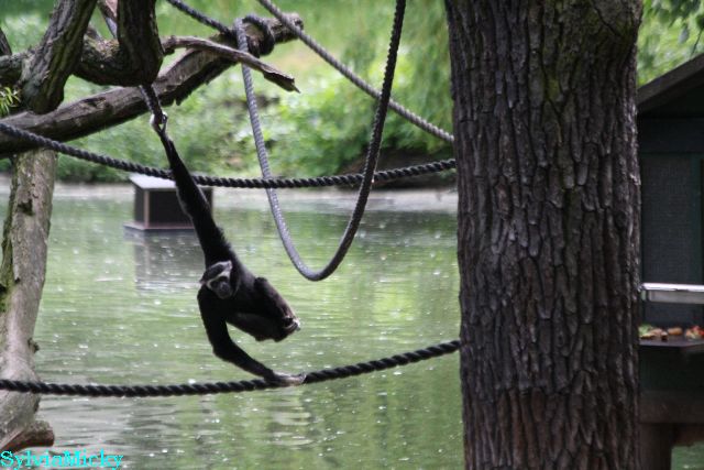 Der Gibbon turnte auf der Insel rum