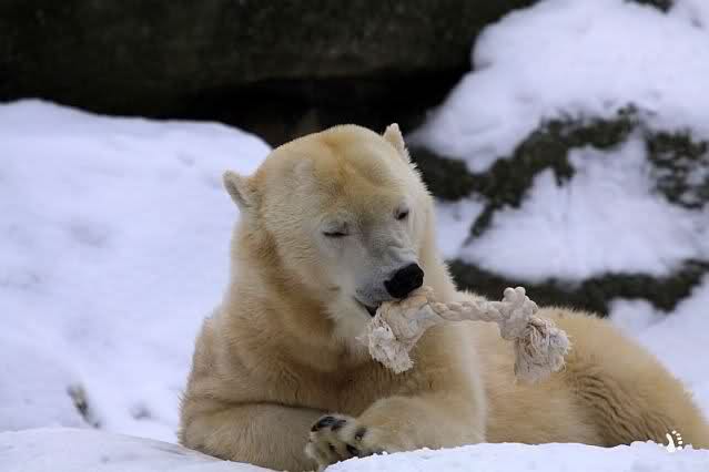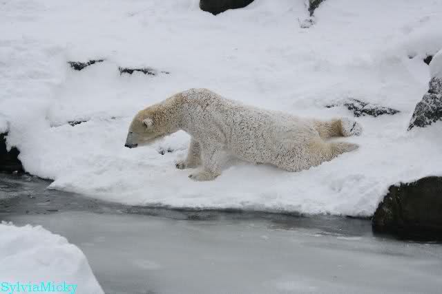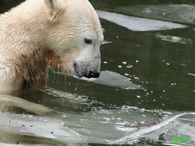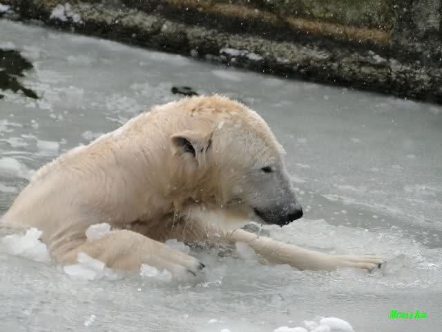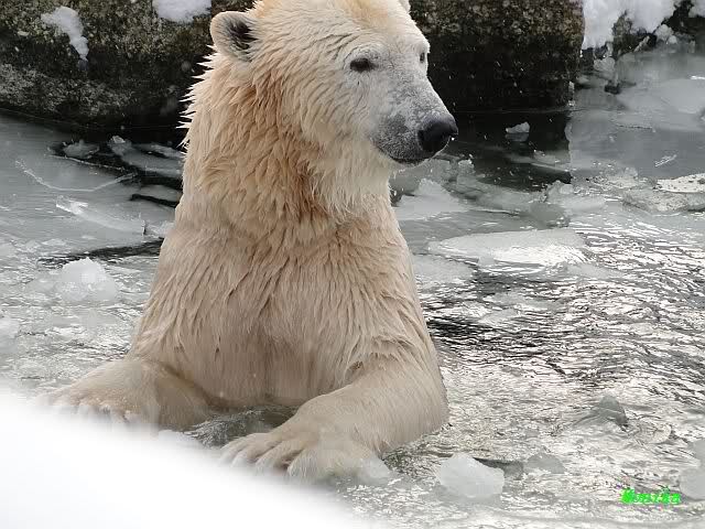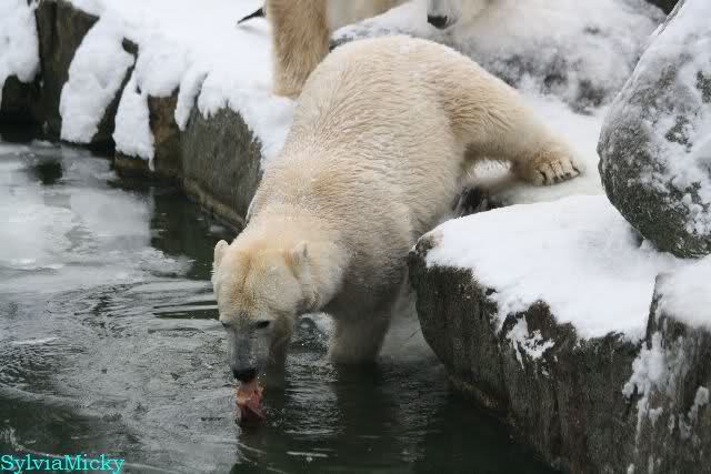 Mir wurde heute gesagt, daß Tosca und Knut heute früh wieder im Wasser gespielt haben. Ich war erst zur Fütterung da. Und wieder gab es einen großen Schritt nach vorn für Knut.