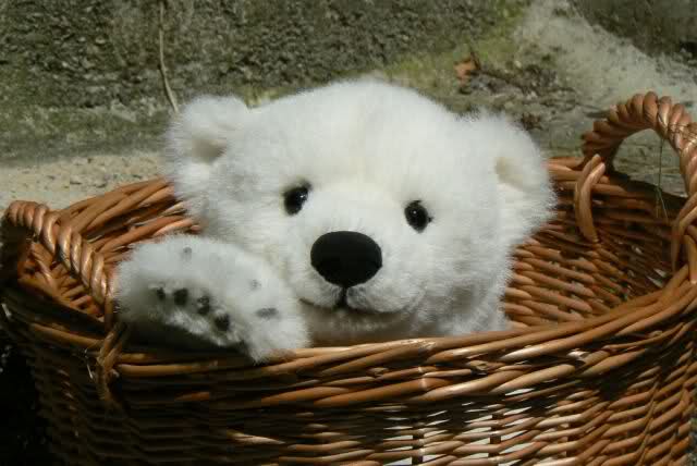 Das ist ja süß! Genauso sieht das Stofftier der Firma Kösen aus, dass wie damals Knut, in einem Korb sitzt.