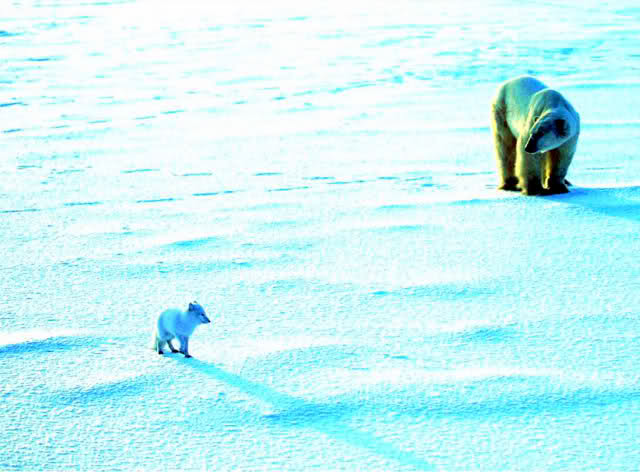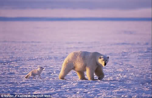 Doch es kommt anders: „Durch mein Fernglas beobachtete ich, wie sie sich vorsichtig näherte“, sagte die Tierschützerin Lill Fronther. „Sie beschnüffelte den kleinen Fuchs, stupste in sanft mit ihrer riesigen Tatze an – und ging dann los, beinahe so, als erwartete sie, dass er folgte.“ Und in der Tat: Hermes tut genau das – mit zaghafte Schritten tapst er der Eisbärin nach, hinein in ein neues Leben. Sie lässt ihn von ihrem Futter fressen, hält ihn nachts warm und inzwischen gilt diese merkwürdige Verbindung als die ungewöhnlichste Adoption Grönlands. Doch es ist noch viel mehr, denn Recherchen im Eisbär Register ergeben später, dass die Bärin offenbar keine eigenen Jungen bekommen kann. „Jetzt schenkt sie ihre ganze Liebe Hermes“. sagte Lill. Und dem bekommt soviel Zärtlichkeit ausgesprochen gut – mittlerweile misst er stolze 53 cm Schulterhöhe. Das ist Rekord unter den Polarfüchsen. Ebenso, wie diese wunderbare Freundschaft ...