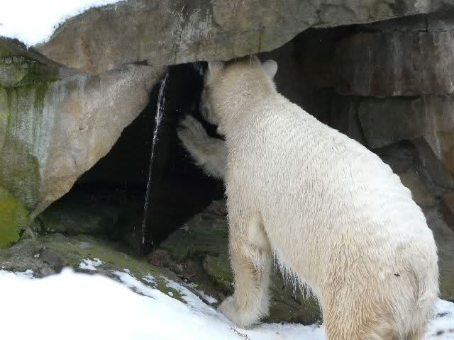 Nach einer ausgiebigen Mittags- und Aufwärmpause gingen wir dann wieder zu Knut zurück. Von anderen Besuchern erfuhren wir, dass Knut in der Zwischenzeit schön mit den Besuchern Ball gespielt hat. So ein Schlingel! Wartet ab, bis wir weg sind und spielt mit den anderen Besuchern Ball.