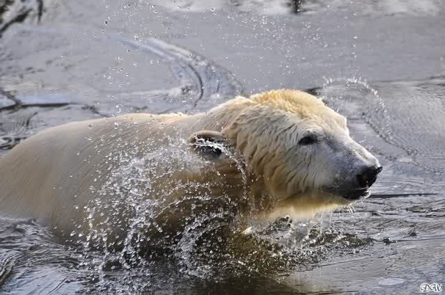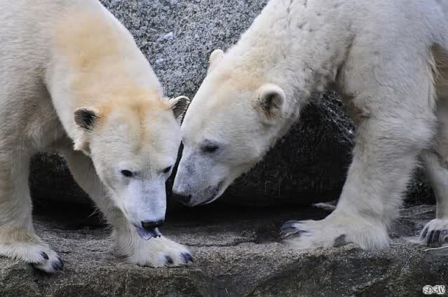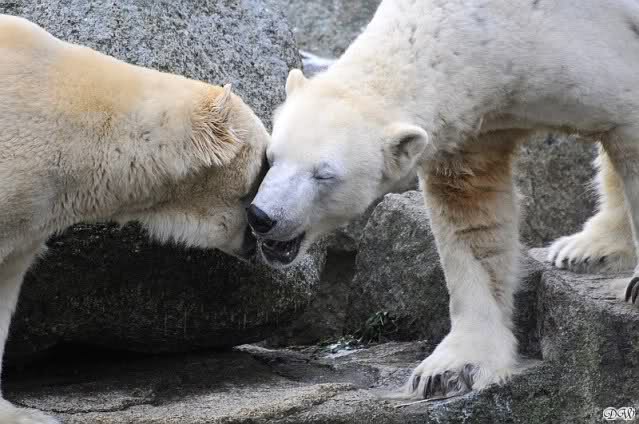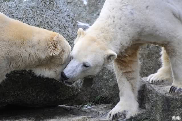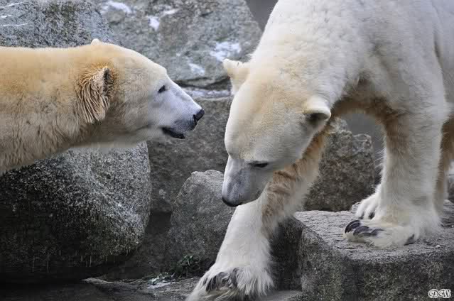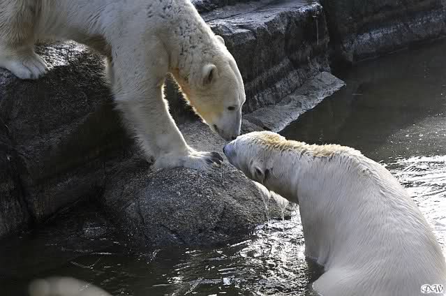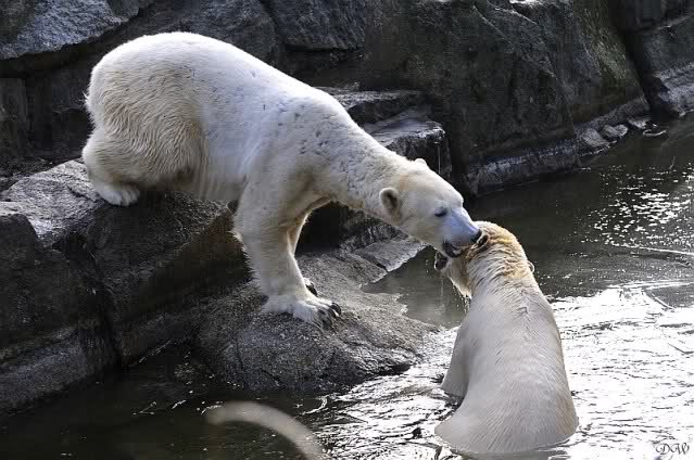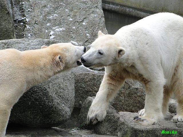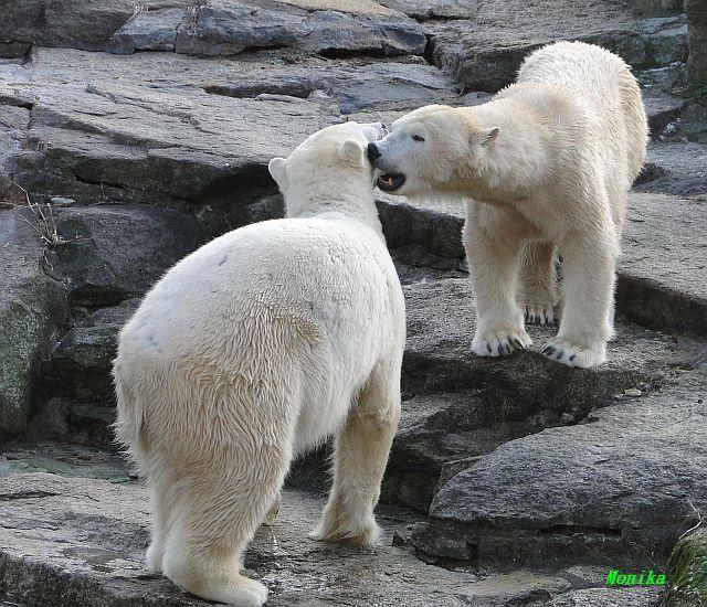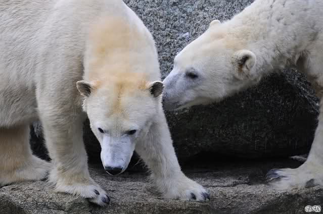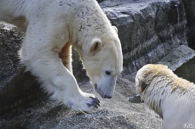 Danke für die Bilder. Ich habe Knut noch nie so weiß gesehen, wie am letzten Bild. Tosca, als die Eisbrecherin, ist sehr schön.