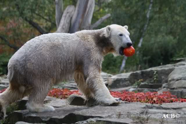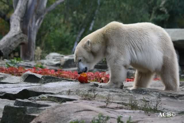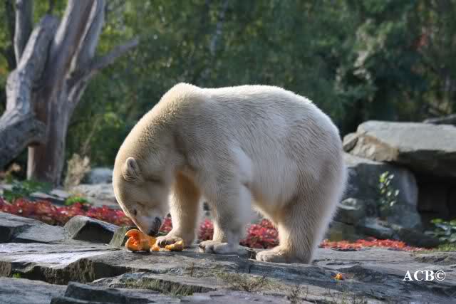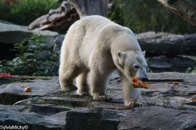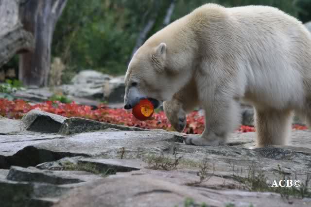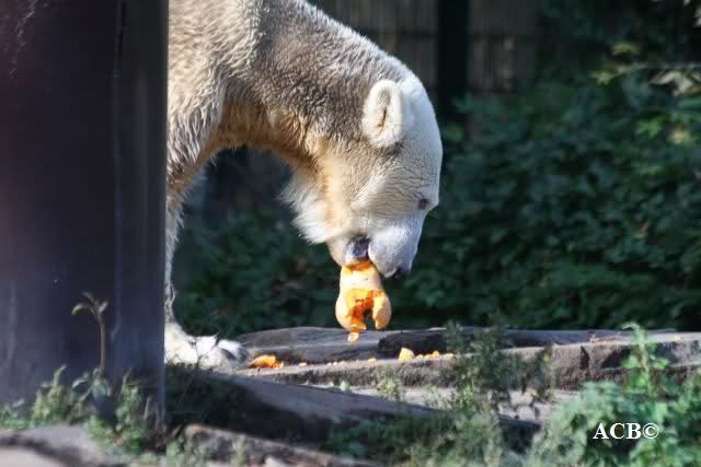 Knut bekam zwei!! Kürbisse. Hat aber nicht viel genutzt, Knut knabberte sie an Gianna fraß sie auf
