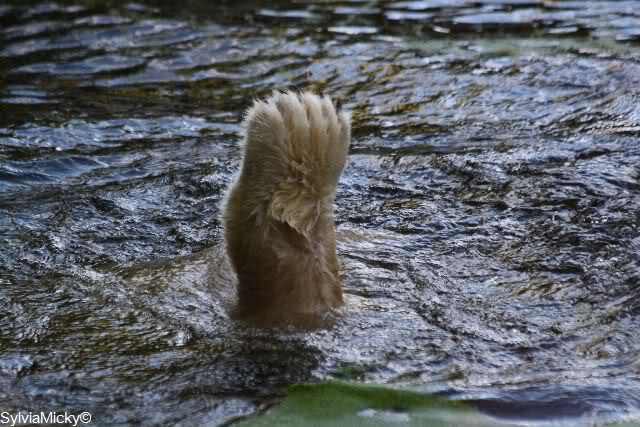 Knut was swimming in water today at morning and did play ball with the visitors. Giovanna watched the "game".