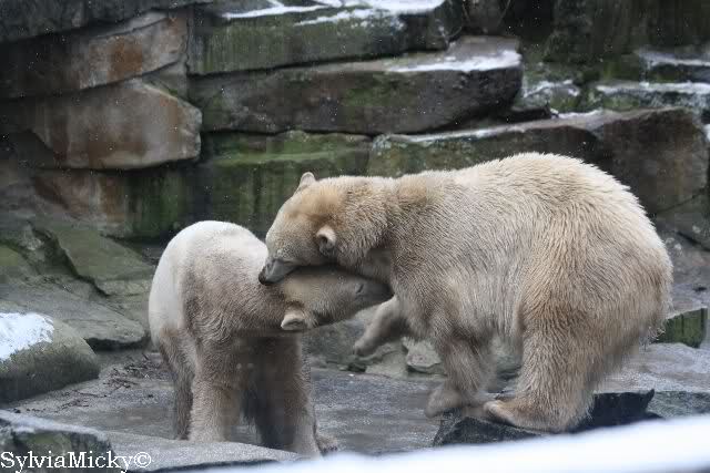 Das war ja heute ein Spaß für die Beiden, aber morgen und übermorgen wird es sicher noch besser! Laut Wetterbericht Eisbären-Wetter!