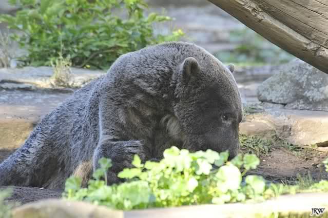 Von den Lippenbären sahen wir heute nicht viel. Sutra hockte wieder in der Höhle und blockierte den Eingang mit ihrem Allerwertesten.