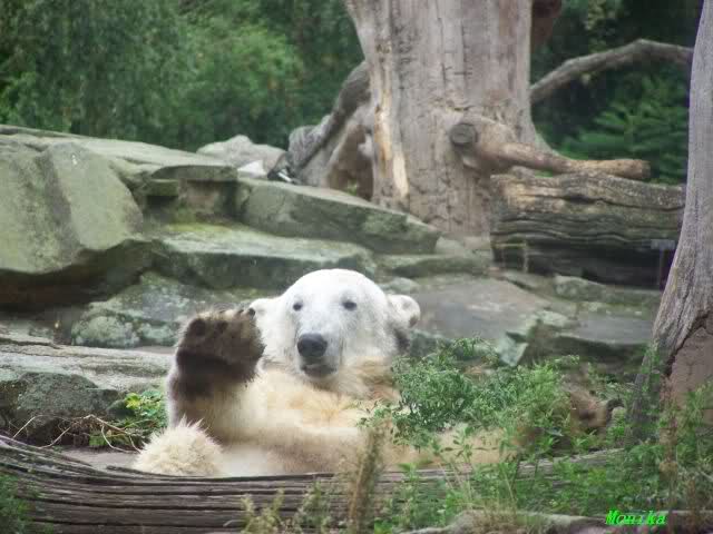 Aus diesem Grund nur ein kurzer Gruß, verbunden mit dem Dank für die vielen tollen Knut Fotos am heutigen Tag. Wie es scheint, habe die großen Eisbären keine Eisbomben bekommen. Das wäre nicht so schön. Und ich gebe Sylvia vollkommen Recht, die großen Eisbären müssen in der brütenden Hitze schmachten. Ob es ihnen wirklich nichts ausmacht, bezweifle ich auch.
