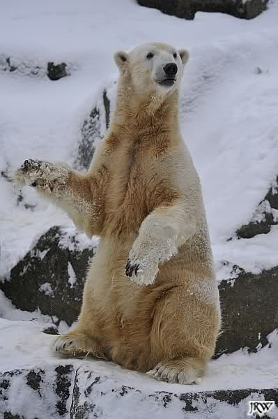 Knut Und eins, zwo, drei, und hoch das Beinchen... Knut übt schon mal den Schnee-Walzer. Leider ohne Dame.