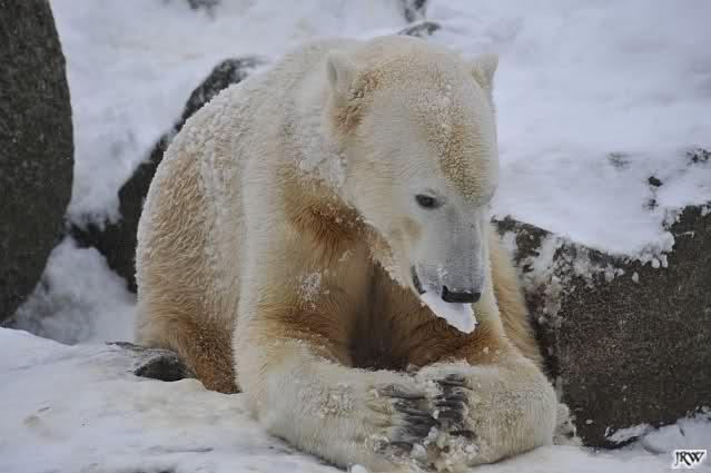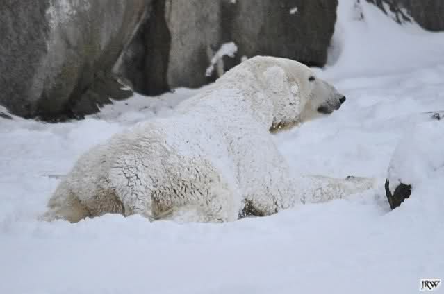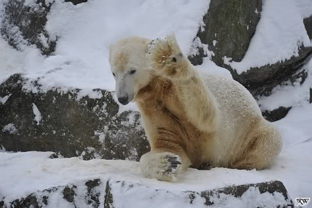 Du hast es gut beobachtet, Kälte allein scheinen auch die Eisbären (und besonders Knut) nicht zu mögen. Bei Schnee ist es eine andere Sache. Da haben sie viel Freude dran. Knut hatte endlich wieder etwas Weiches unter seinem Hintern . Das schien er zu genießen.