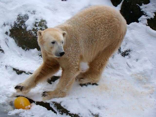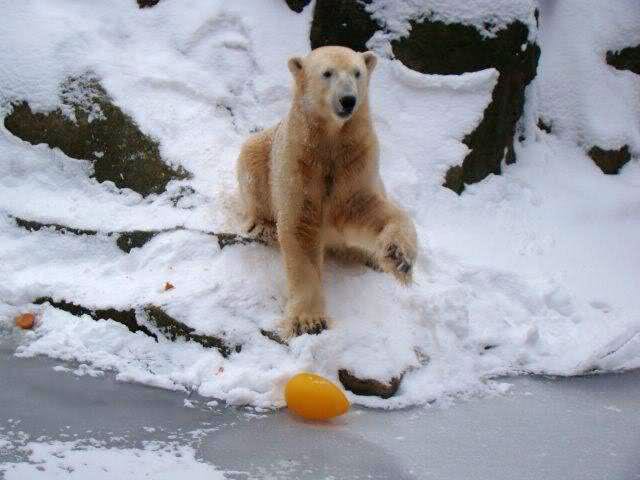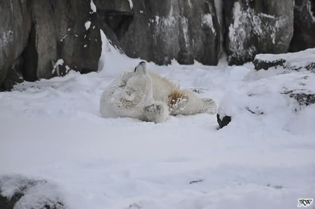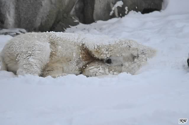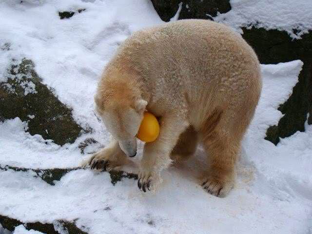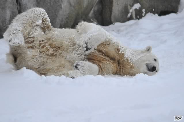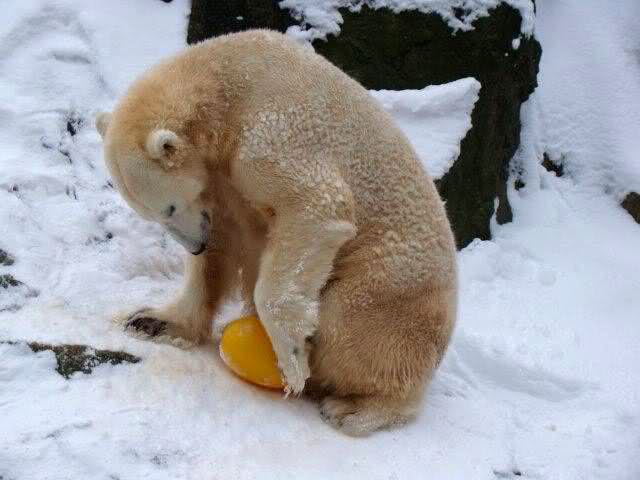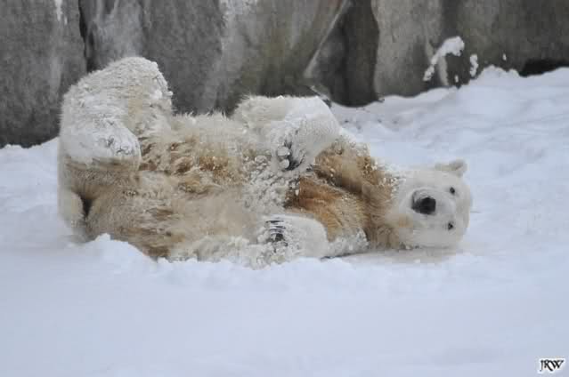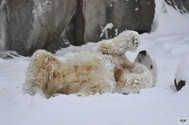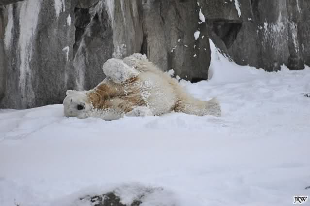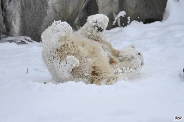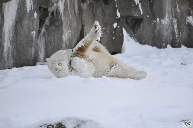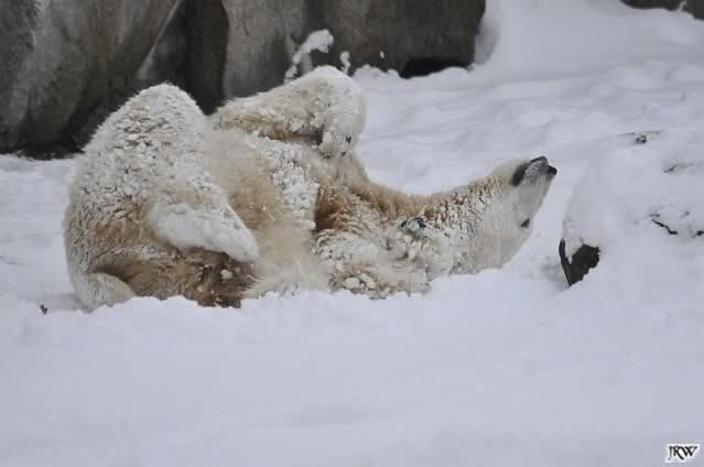 schön wie Knut vergnügt im Schnee rumkugelt