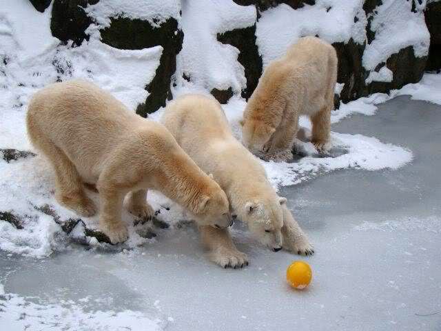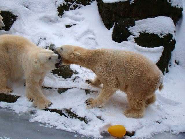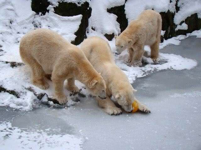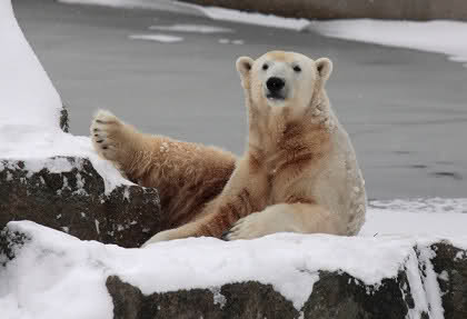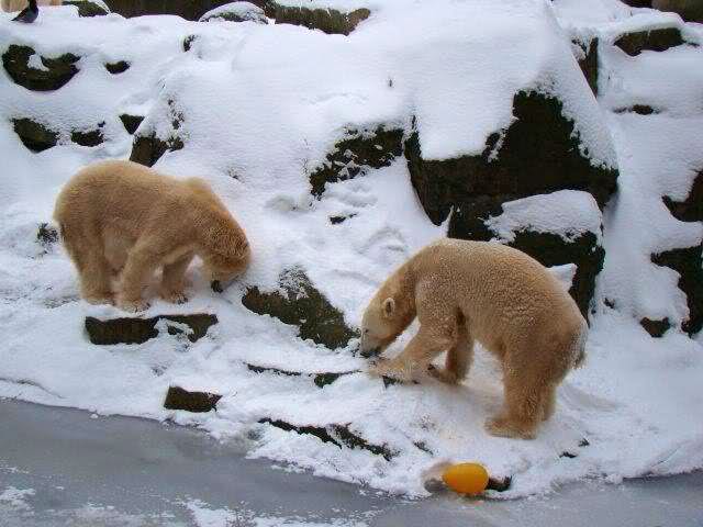„Eisbären lieben die Kälte zwar nicht unbedingt, aber mit Schnee und Eis können sie immer was anfangen“, lachte Zoo-Biologe Ragnar Kühne. Und wie seine vier Petze etwas anfangen konnten! Vergnügt wälzten sich Tosca, Nancy, Katjuscha und Knut im Schnee, brachen mit den Vorderfüßen die Eisschicht in ihrem Wasserbecken. Übrigens: Am Sonntag feiert Besucherliebling Knut seinen vierten Geburtstag. Zwar soll es dann wieder wärmer werden – gegen die Plusgrade gibt’s aber eine prall gefüllte Eisbombe.