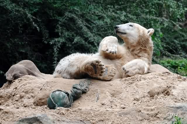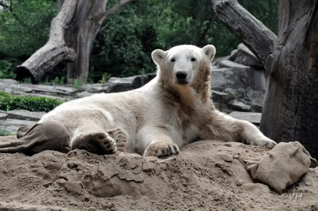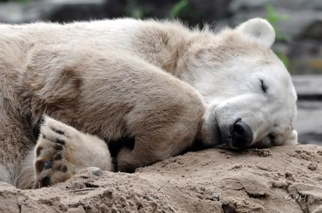 Wenn es in meinem heutigen Zoobericht nur im Knut gehen würde, wäre er sehr kurz. Denn Knut verschlief den halben Vormittag. Er lag auf seinem Sandhaufen und führte uns in jeder halben Stunde eine neue, entzückende Schlafposition vor.