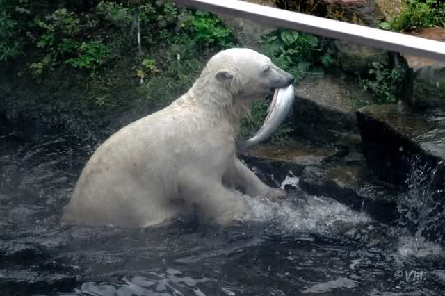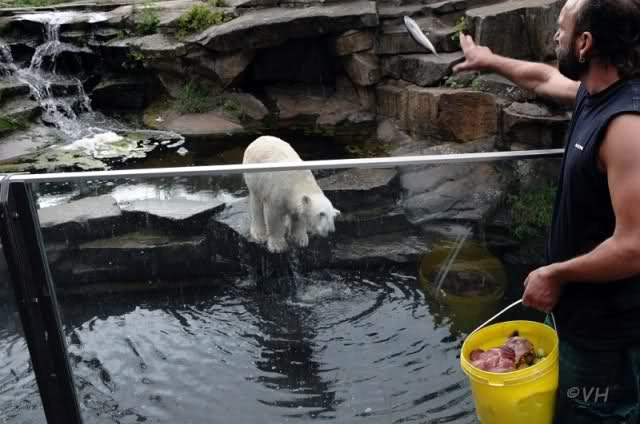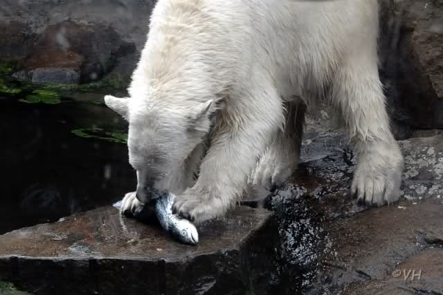Barbara schau wie gut ihm Fisch schmeckt, denn er bekommt viele dicke leckere Fische geschenkt, der Knut, immer nur das Beste für den süßen Bärenjungen !!