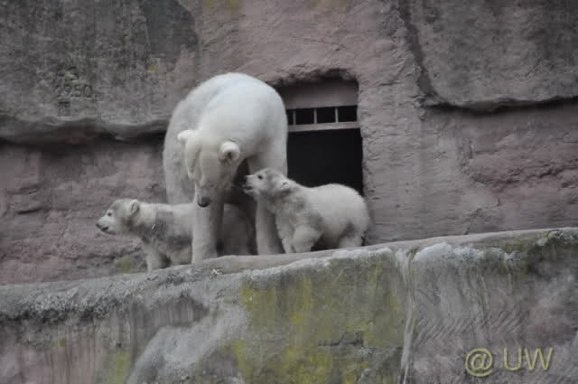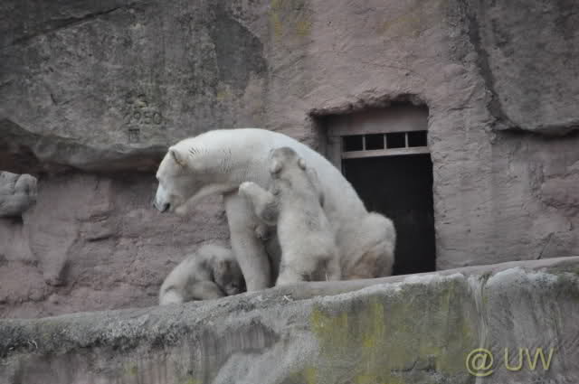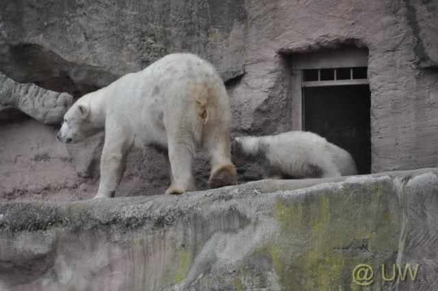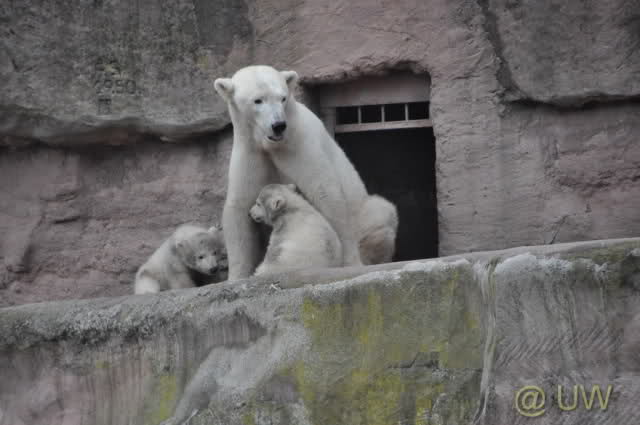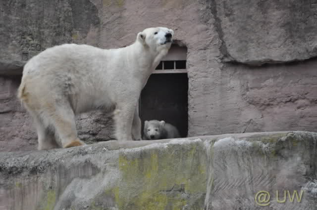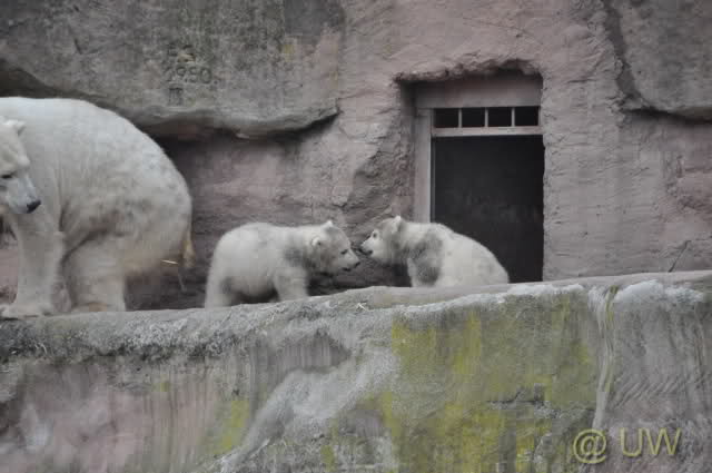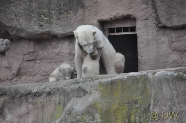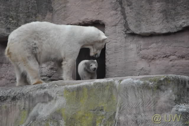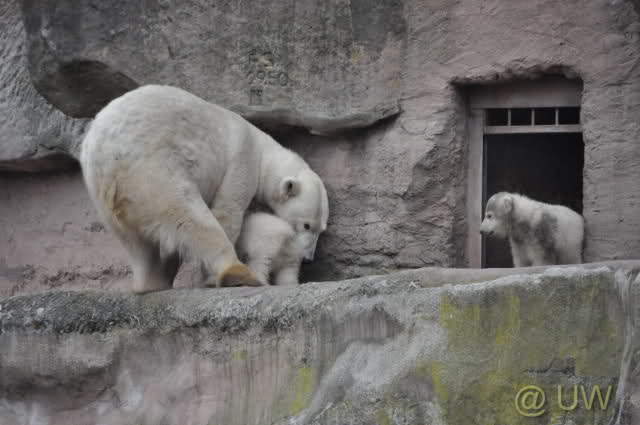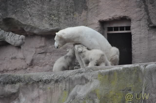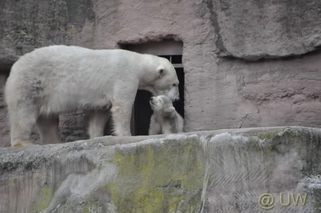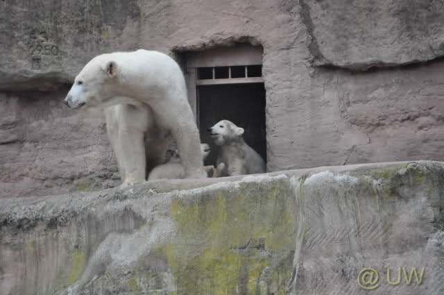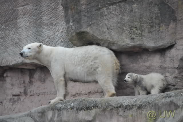 Gestern hatte ich Glück, die gesamte Eisbären-Family angucken zu dürfen. Vera's Blick ist häufig auf das Nachbargehege gerichtet, wo die männliche Gefahr lauert. Eine Eisbärinfreundin aus Moskau kennt Vera aus dem dortigen Zoo. Habe nun auf der HP vom Tiergarten nachgelesen und es stimmt definitiv, dass Vera in Moskau geboren ist.