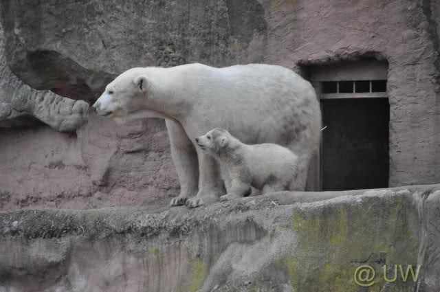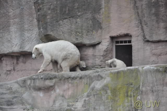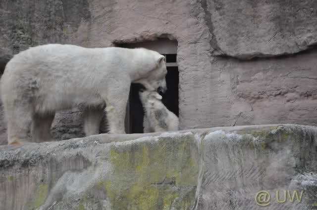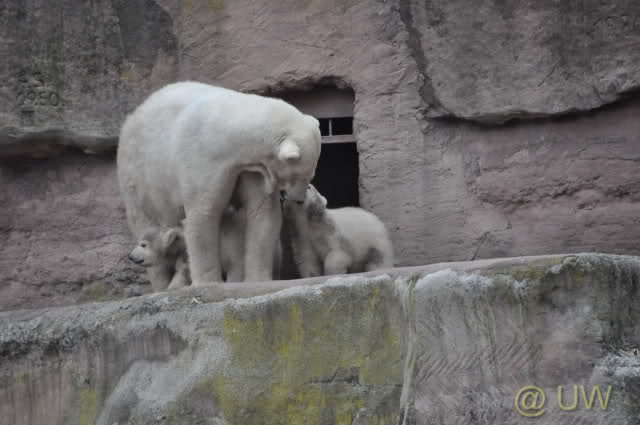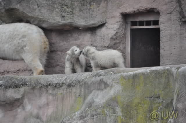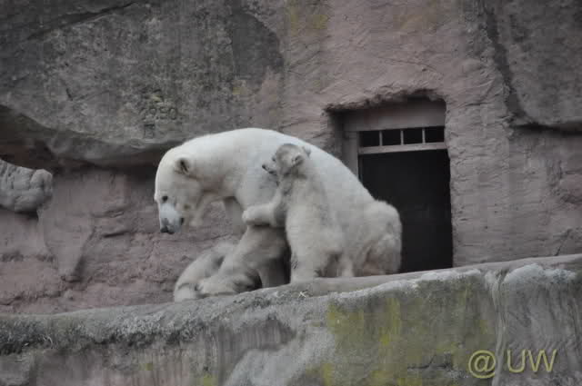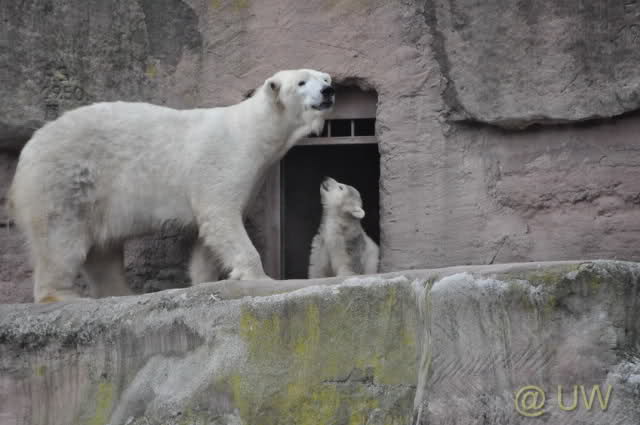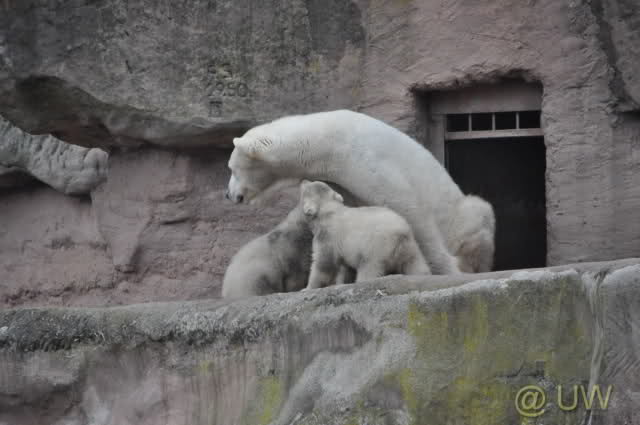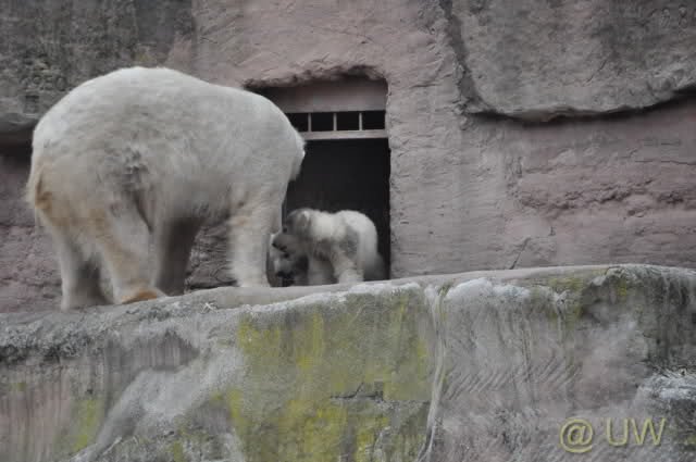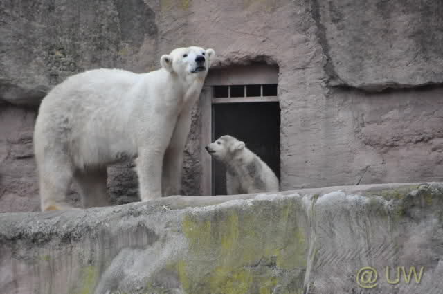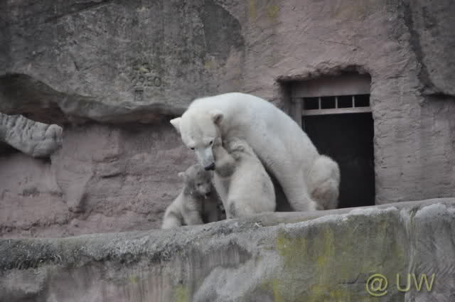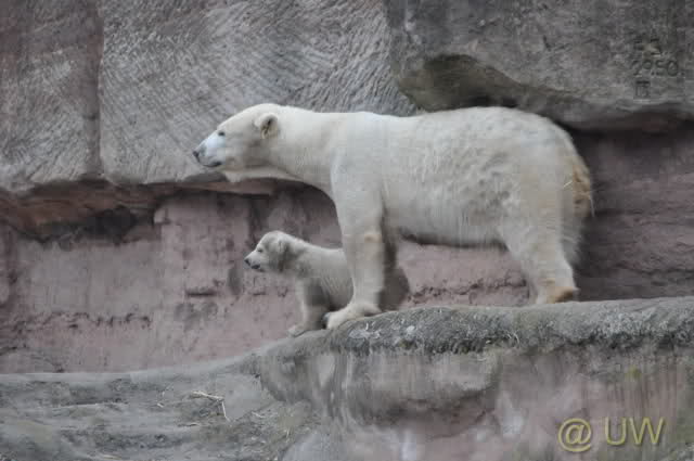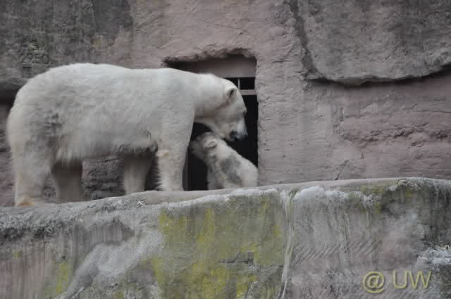 Gestern hatte ich Glück, die gesamte Eisbären-Family angucken zu dürfen. Vera's Blick ist häufig auf das Nachbargehege gerichtet, wo die männliche Gefahr lauert. Eine Eisbärinfreundin aus Moskau kennt Vera aus dem dortigen Zoo. Habe nun auf der HP vom Tiergarten nachgelesen und es stimmt definitiv, dass Vera in Moskau geboren ist.