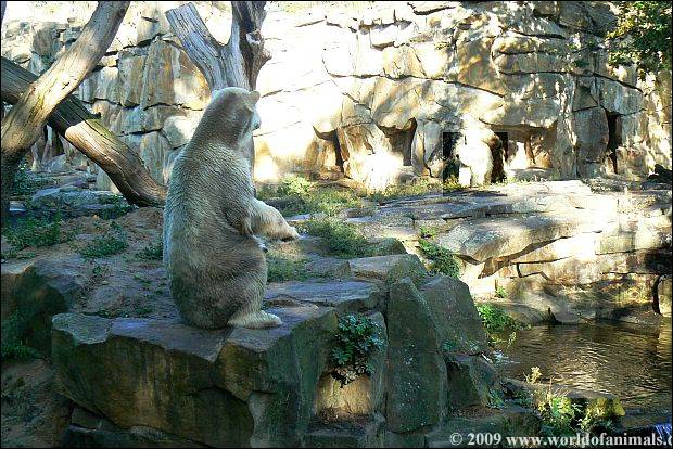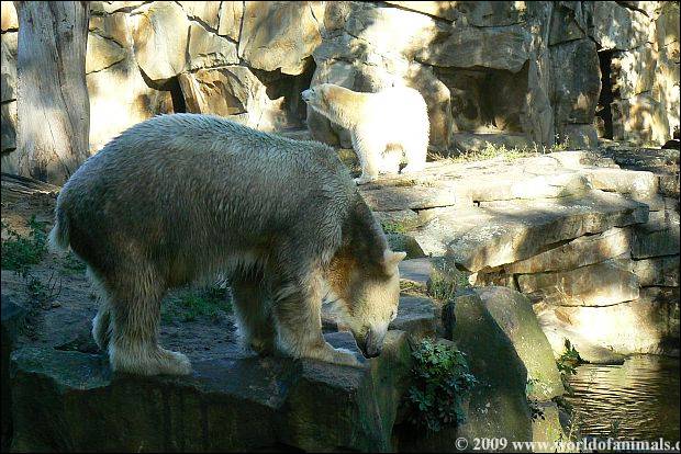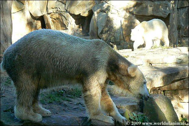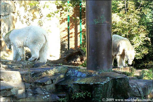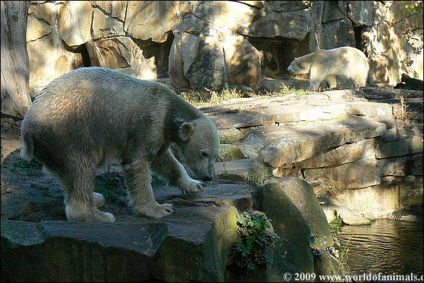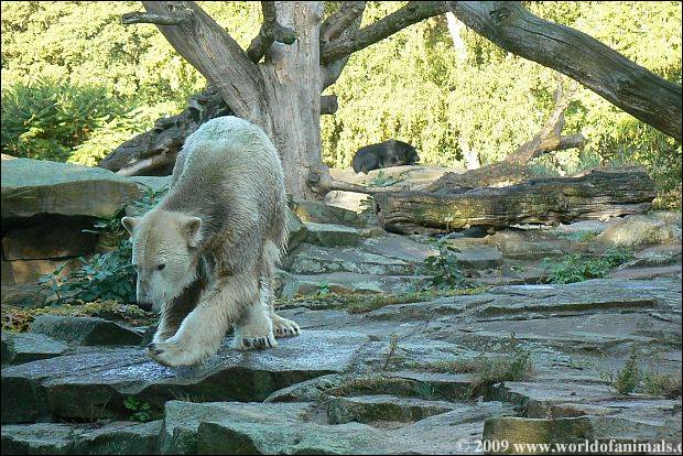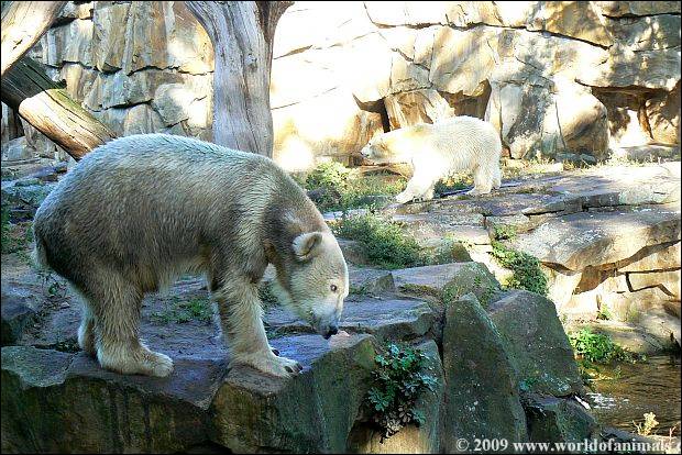 At afternoon: Knut is alone on the enclosure. Giovanna is in her cave. So he (Knut) has the opportunity to return back to a little bit of his normality and find a little peace and quiet.