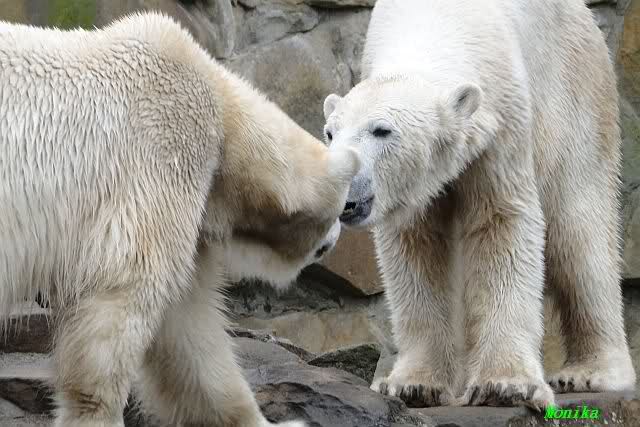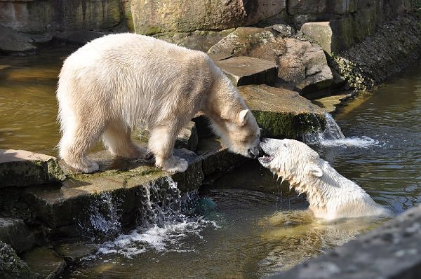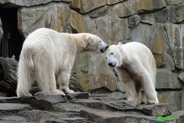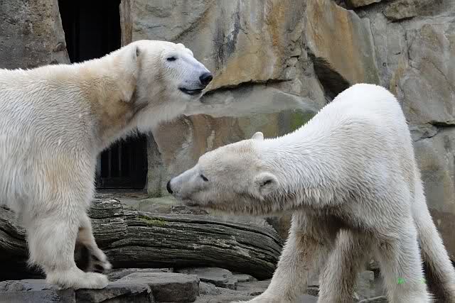 Knut und Gianna sind am Vormittag meistens nur gelaufen. So im Vorbei gehen gab es mal ein Küßchen. Es ist schade, dass die Beiden gerade in den Ostertagen so gar nicht in Spiellaune waren. Die vielen auswärtigen Besucher hätten sich bestimmt gefreut.