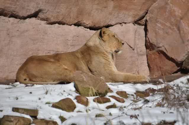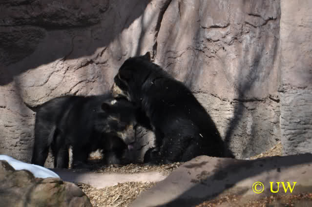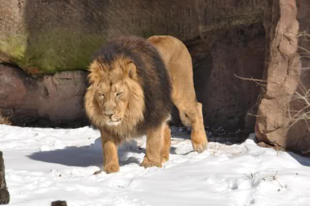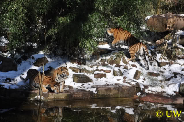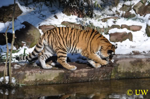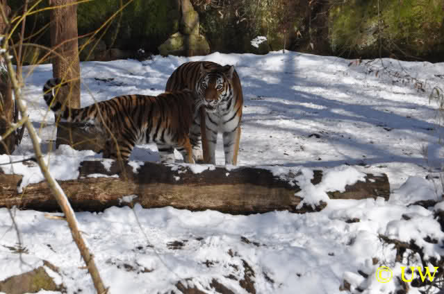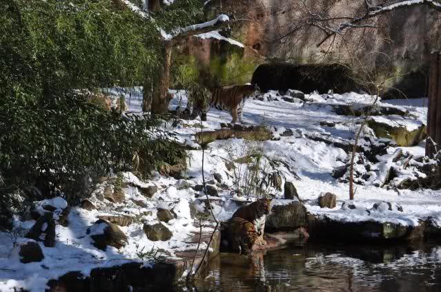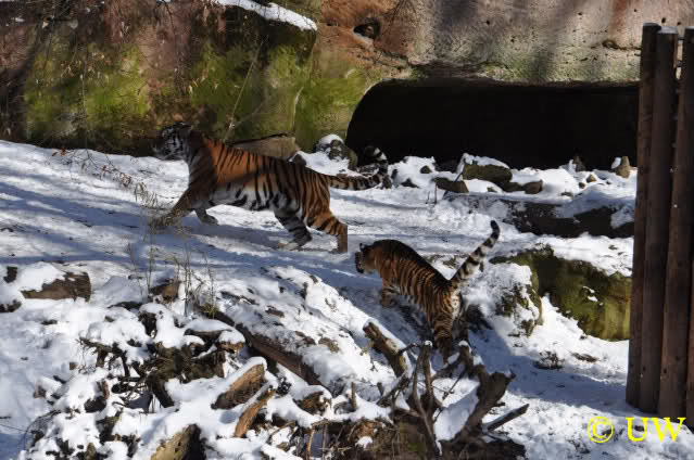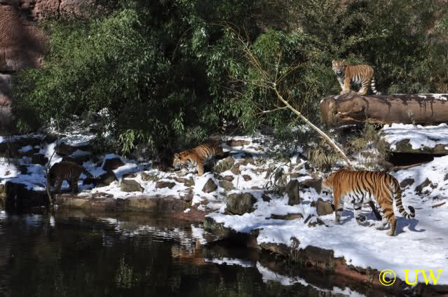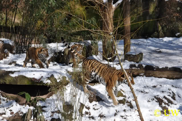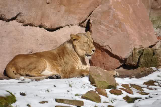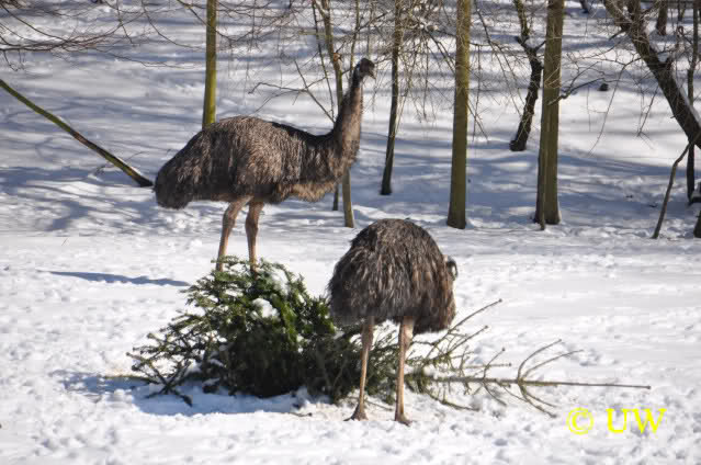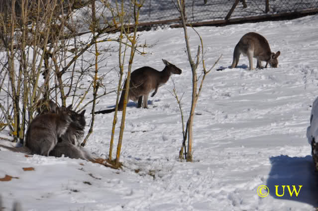 Der Winter war noch einmal in den Tiergarten zurückgekehrt. Da die Sonne schien waren viele Tiere, die sonst wohl kaum Schnee sehen, draußen und ließen es sich gut gehen.
