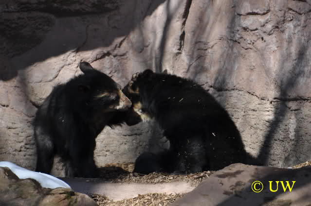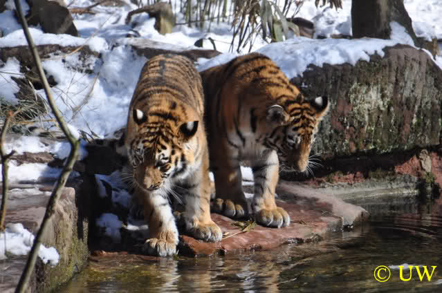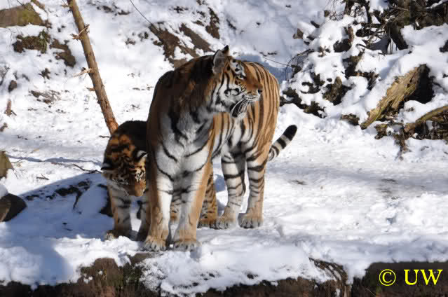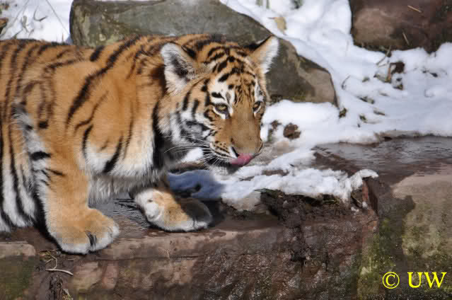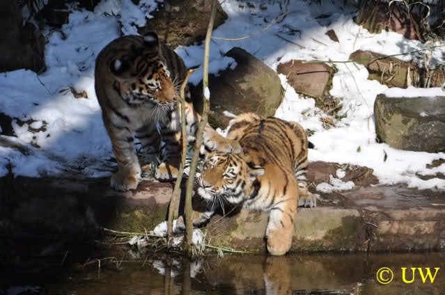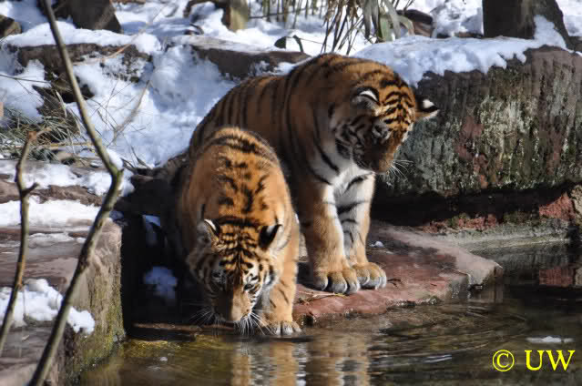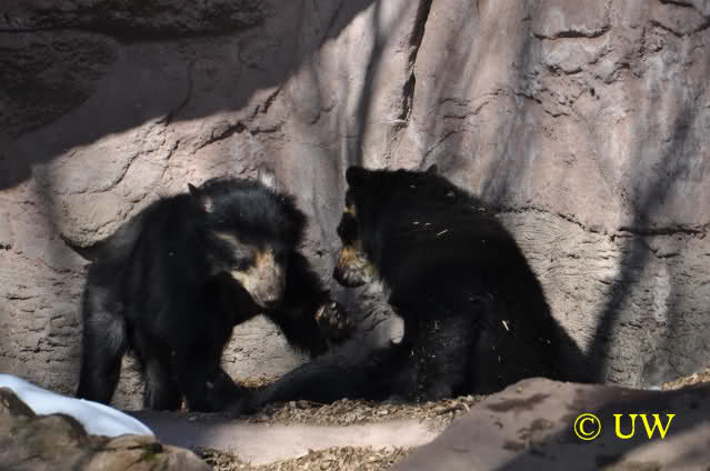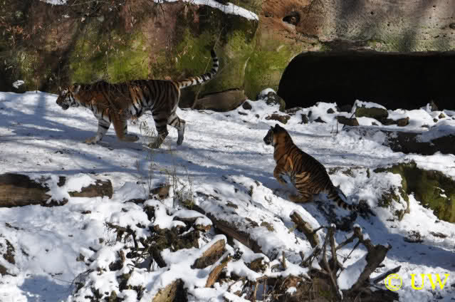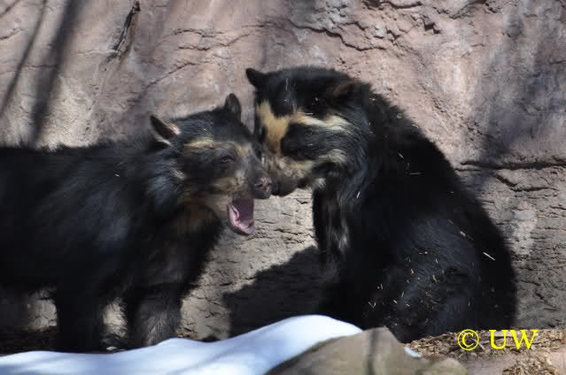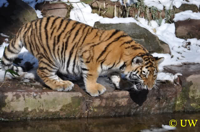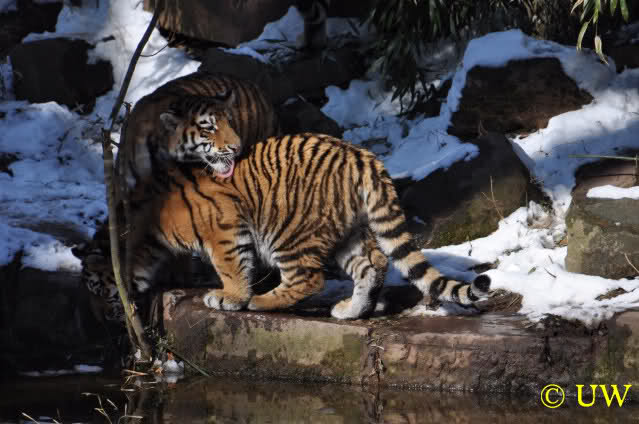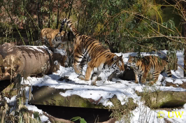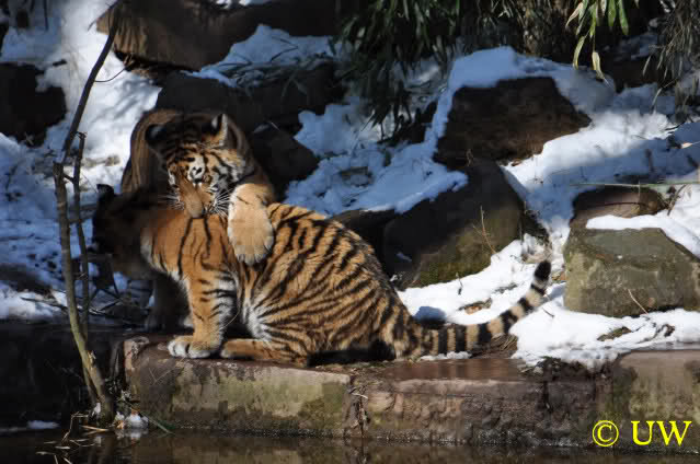 Der Winter war noch einmal in den Tiergarten zurückgekehrt. Da die Sonne schien waren viele Tiere, die sonst wohl kaum Schnee sehen, draußen und ließen es sich gut gehen.