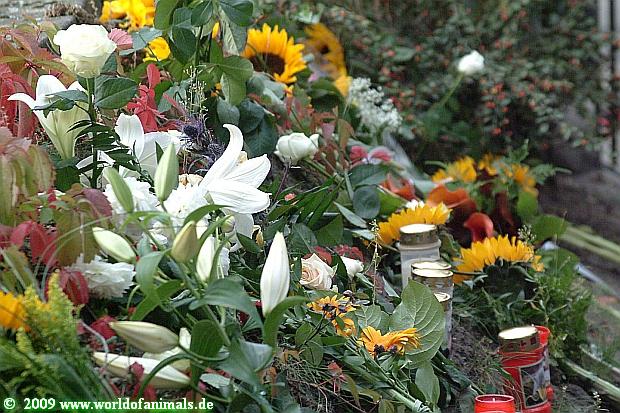 Viele Menschen hatten Blumen mitgebracht, ebenso Gedichte, Fotos. Auch Grabkerzen wurden am Gehege aufgestellt. Dabei wurde immer auf die Sicherheit geachtet.