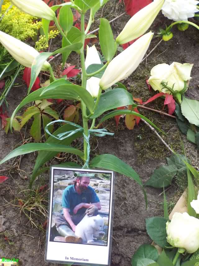 "DANKE" Thomas Dörflein für unseren Knut. Sie, und der kleine Knut, haben so viele Menschen zusammengeführt. Wir haben viele, wahre Freunde gewonnen, und das ist sehr wertvoll. "DANKE" Thomas Dörflein!!! "DANKE" an alle Freunde, die heute mit uns im Zoo waren, im Gedenken an den einzigartigen "Bärenvater"! "DANKE" auch an alle "Freunde", die leider nicht bei uns im Zoo sein konnten, aber ihre Gedanken mit uns teilten. Wir verneigen uns vor einem "einzigartigen" Menschen.