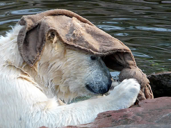 Vor allem Rasputin! Bei ihm löst der Sonnenschein scheinbar Kreativität aus. Der russische Bär ist nicht nur ein Eisbär – nein! Er ist ein … ich würde fast sagen … ein russischer Eisbärenmodezar. Stolz präsentiert er den neuesten Look für Eisbären in diesem Frühjahr.