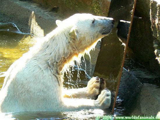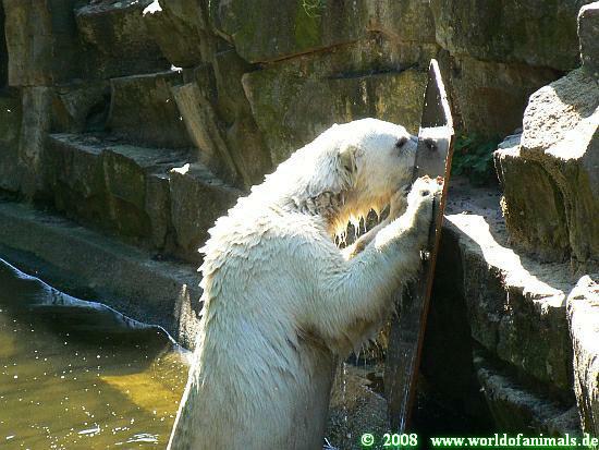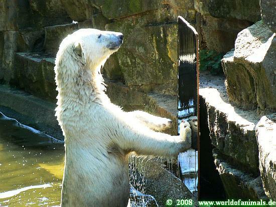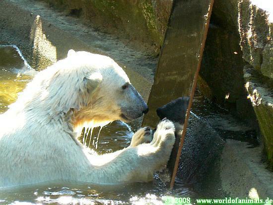 What a strange experience for Knuti to see another polar bear. But where is he? He's not behind this magical shiny thing...