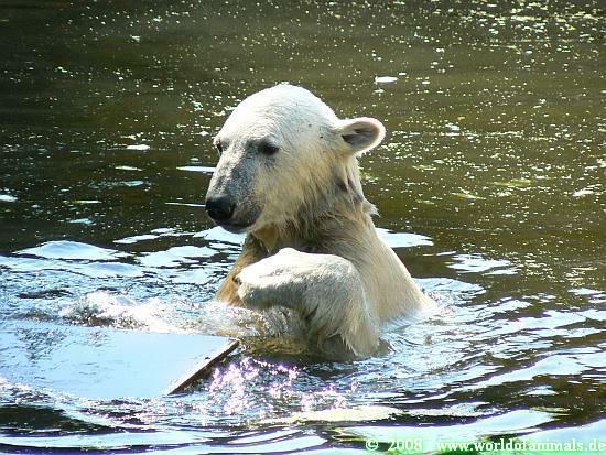 Here are now my next picture serie from Knut and his new *surf board* or *mirror*. Enjoy our polar bear kid.