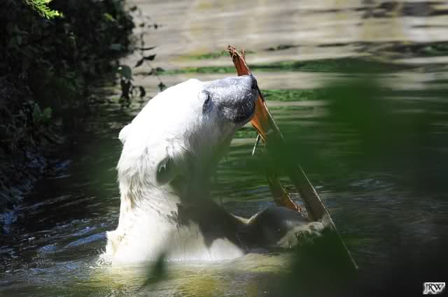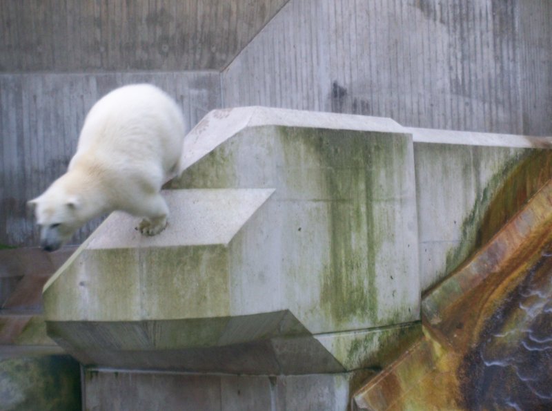 Ich musste ziemlich die Beine in die Hand nehmen, um pünktlich zur Fütterung bei den Eisbären zu sein. Die Fütterung machte heute Herr Röbke. Sie gefiel mir gut, wie immer.