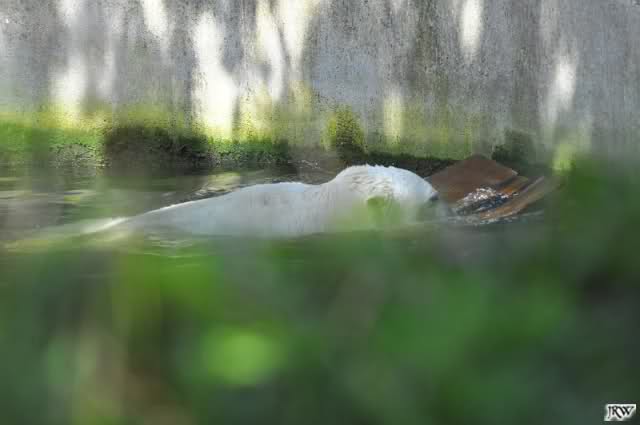 Gleich hinter dem Eingang, bei den Nashörnern entdeckte ich etwas, dass mir zuvor nie aufgefallen war. Die Nashörner haben einen Swimmingpool. Er befindet sich im zweiten Gehege, ganz links. Als ich ankam, planschte ein Nashorn gerade darin herum.