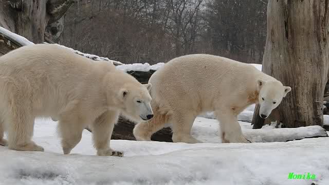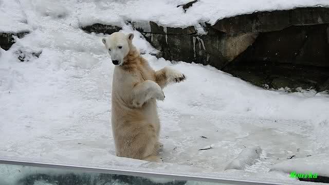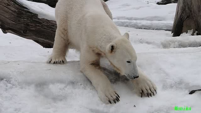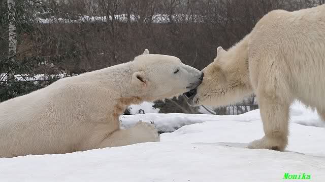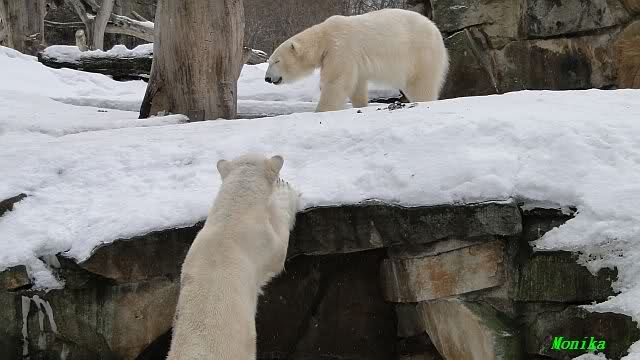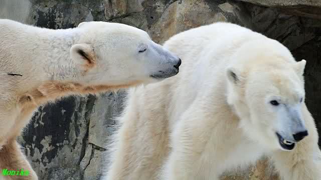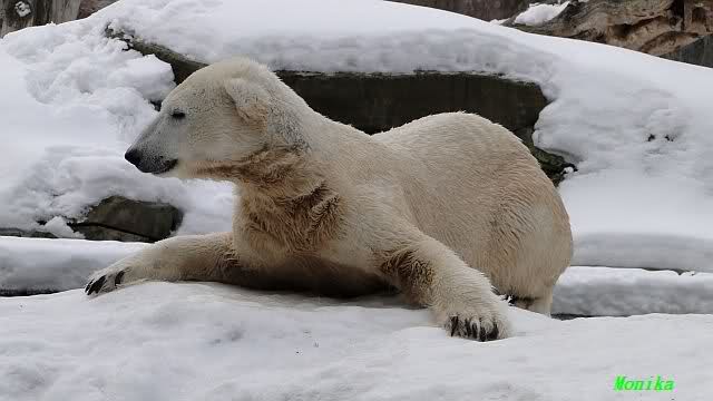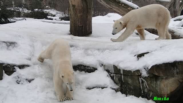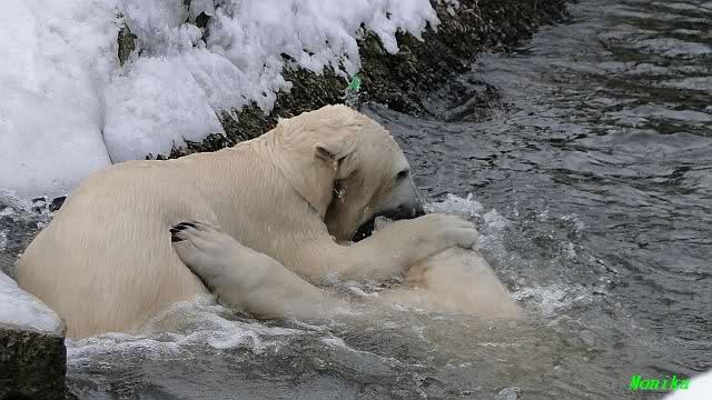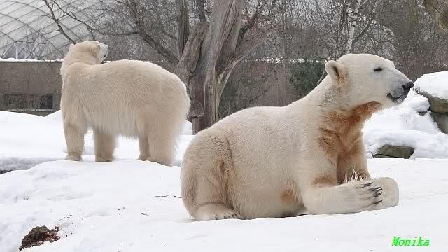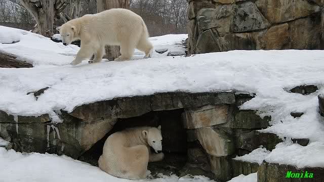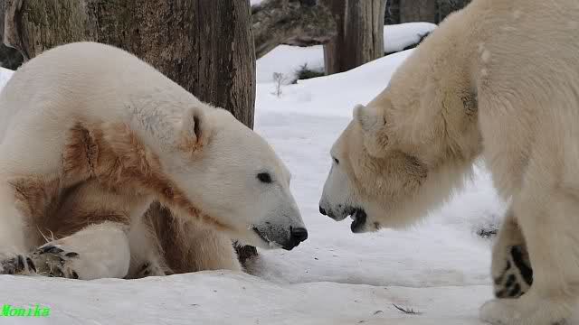 Thank you to Monika and Hartmuth for you photos and reports. The two bears are in very different moods right now! It looks like Knut will be glad when the ice melts\