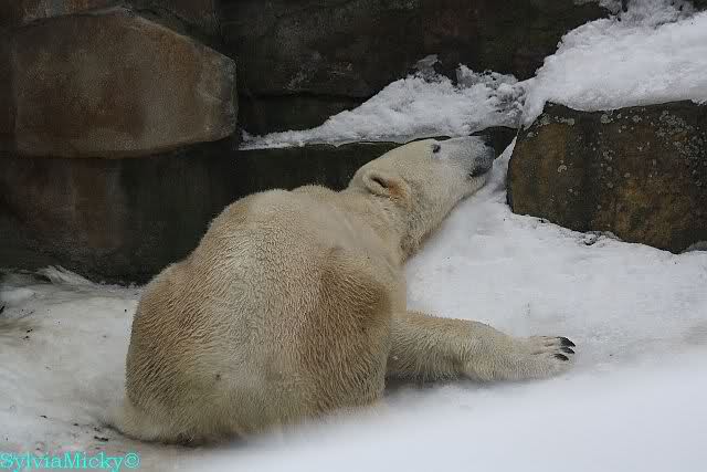 Als ich den Zoo verließ, lag Knut immer noch unten und tat das was er so gerne macht, er pfriemelte am Eis.