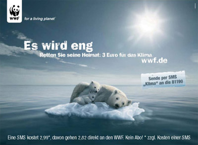 In diesem Zusammenhang möchte ich das Bild vom WWF nocheinmal posten. Hier kann jeder, der möchte, eine SMS schicken und somit ein kleine Spende entrichten.