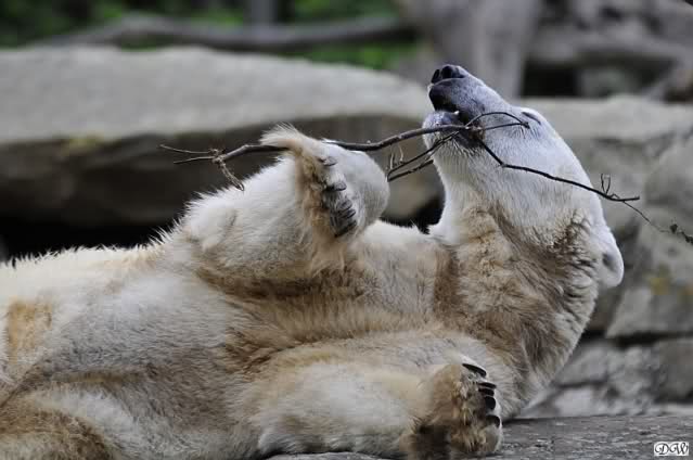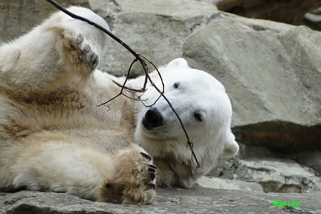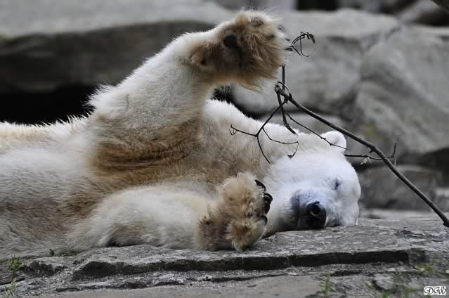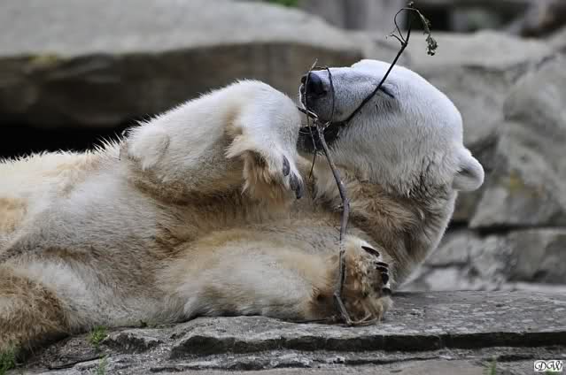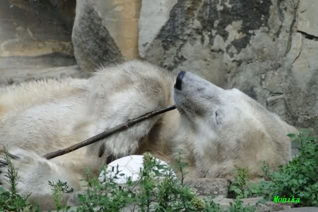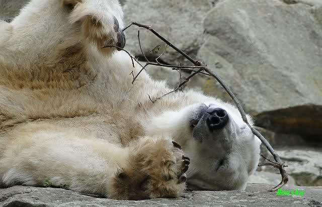Anschließend friemelte Knut mit einem kleinen Zweig, bis er darüber einschlief.