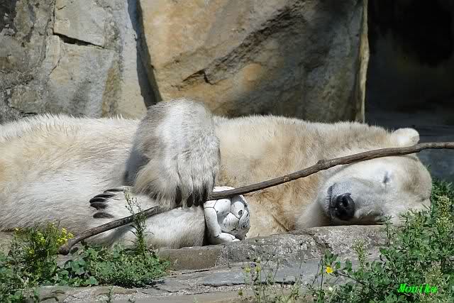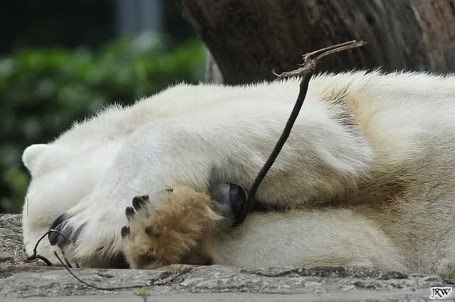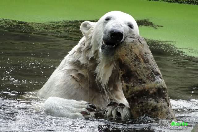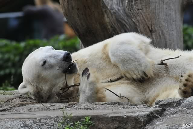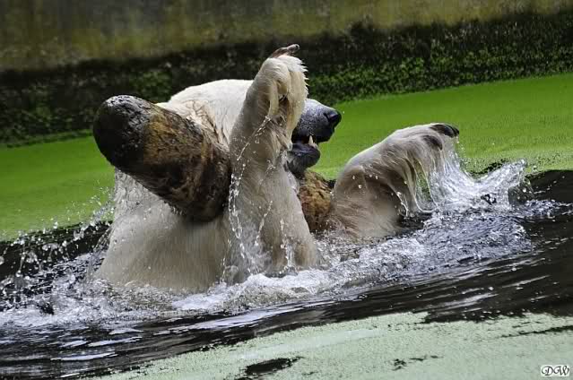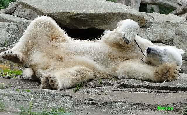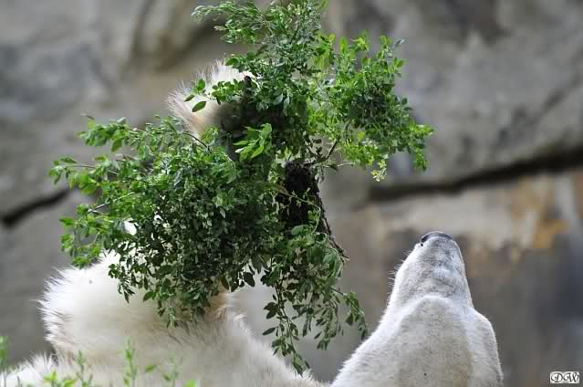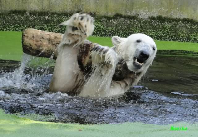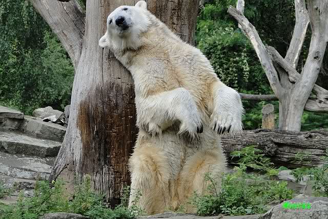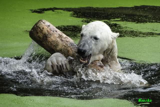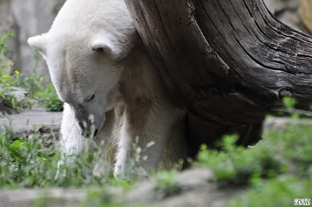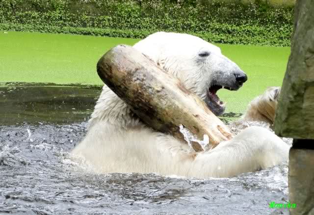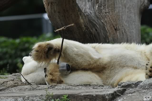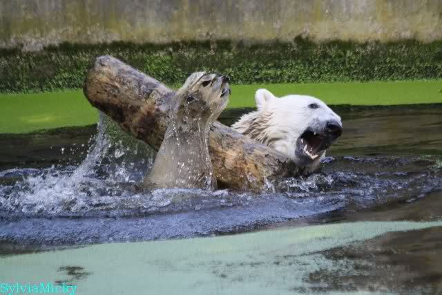 ... am Tag nach "Bellas" Abreise trainierte Knut die Muskeln wieder mit seinem geliebten Baumstamm ...