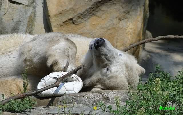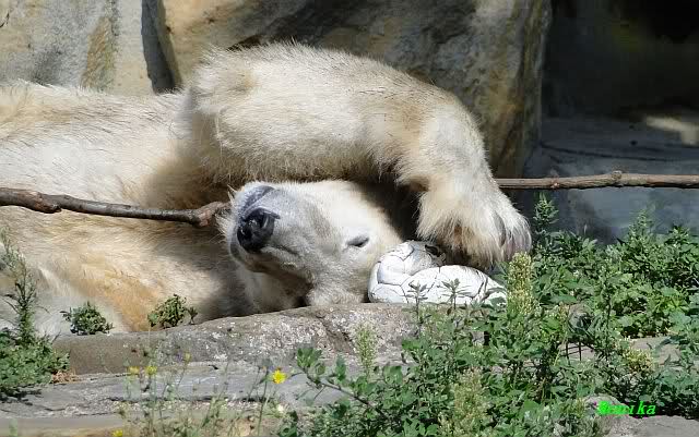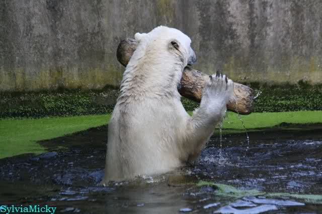 Von wegen nur handaufgezogene Bären würden mit den Besuchern spielen. Hier ist ein Video vom vorigem Jahr das zeigt, wo Yoghi mit den Besuchern Ball spielt. Wenn man auf You Tube "Münchner Eisbären" eingibt, findet man noch mehrere kleine Videos über die spielenden Bären.