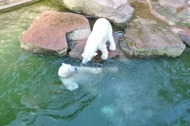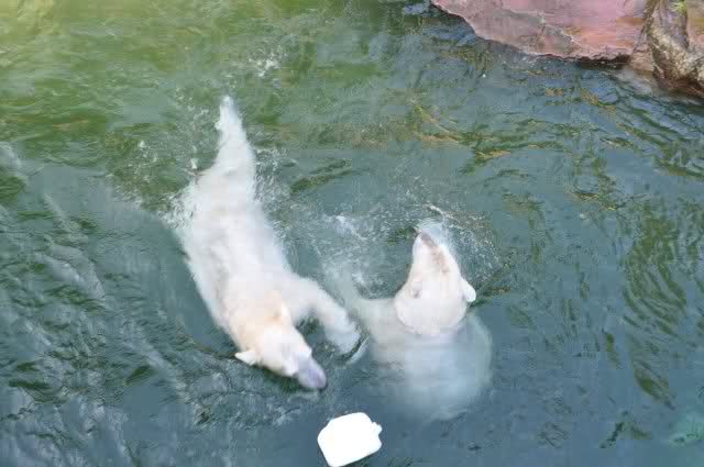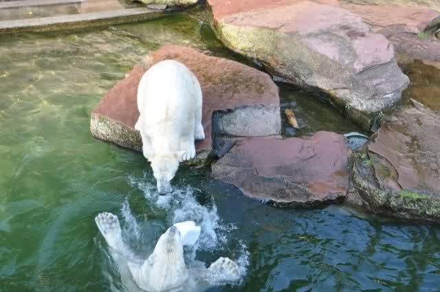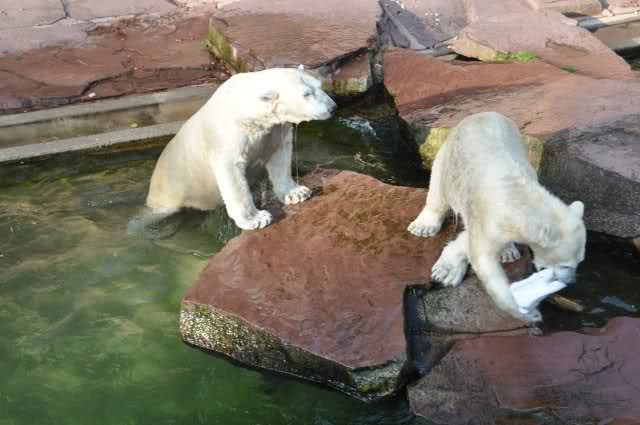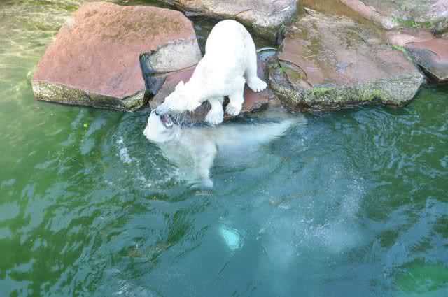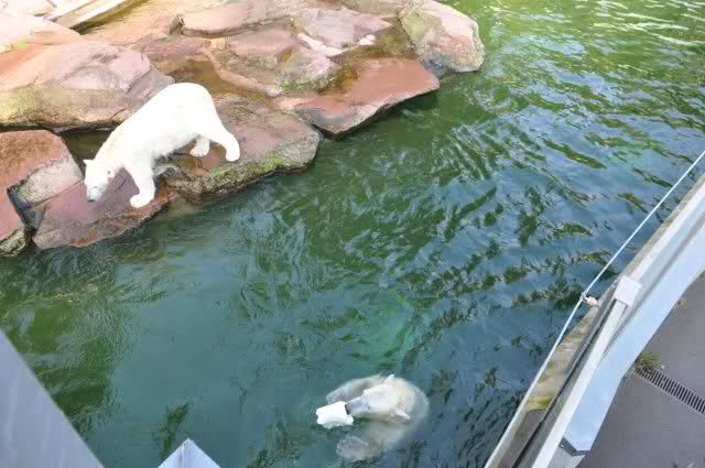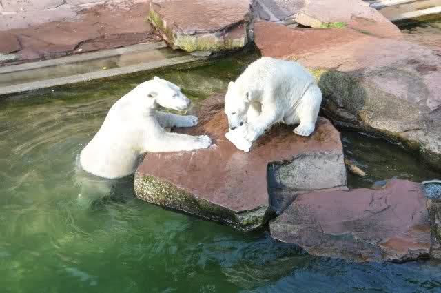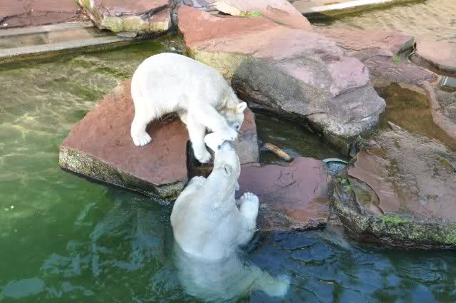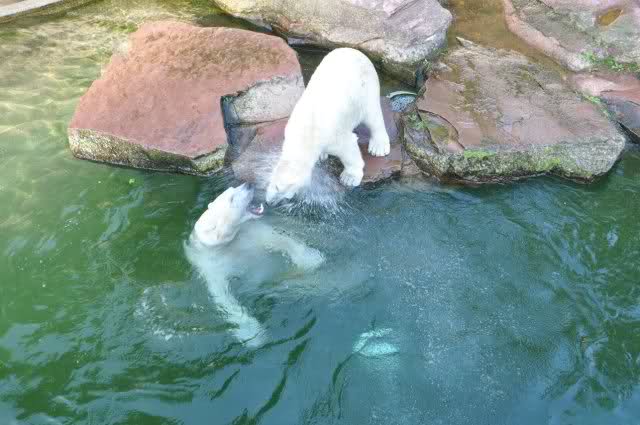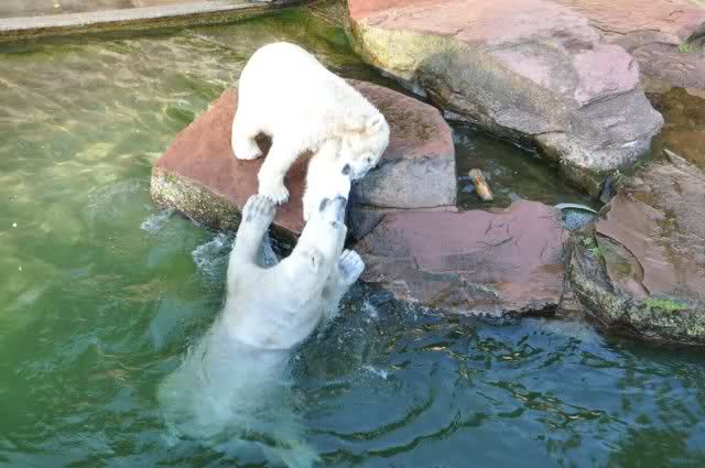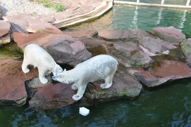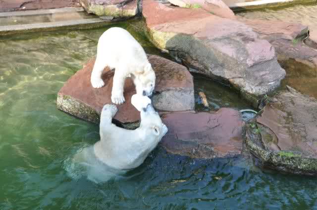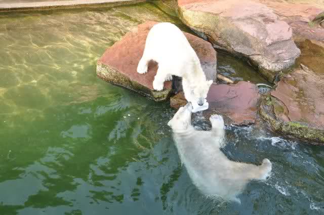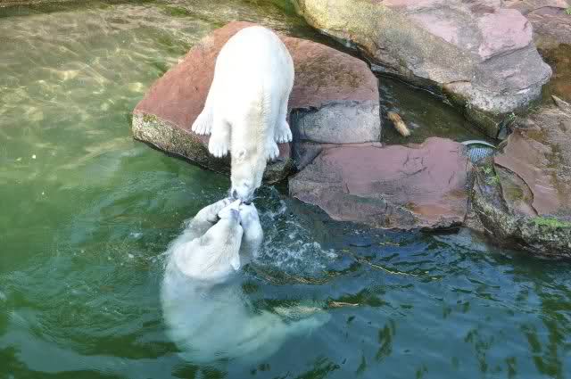 Danke, Uli, für die weitere Bilderserie von Flocke und Rasputin. Einfach herrlich anzuschauen wie Eisbären Kids spielen können. Aber langsam schmilzt auch das Eis zwischen Giovanna und Knut. Flocke und Rasputin haben da zeitmäßig einigen Vorlauf.