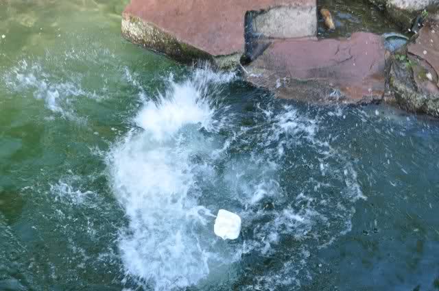 Rasputin hält den Kanister unter Wasser fest, Flocke kann sich nicht überwinden, ins Wasser zu springen