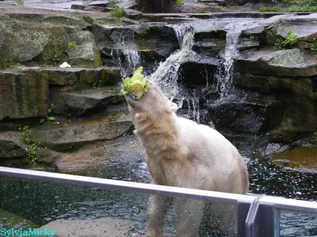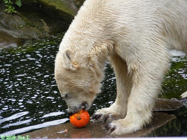 Zur Fütterung gab es u.a. einen Kürbis, den Knut aber liegen ließ. Genauso den Salat. Gianna freute sich. Sie fraß, wie immer die Reste.