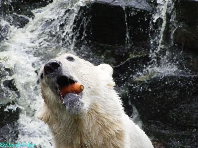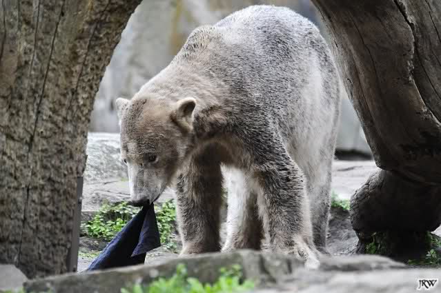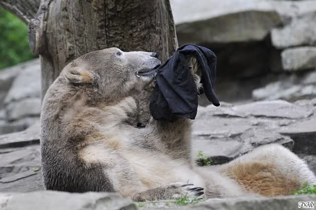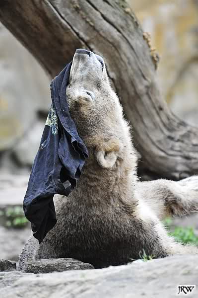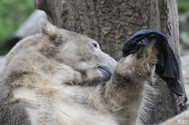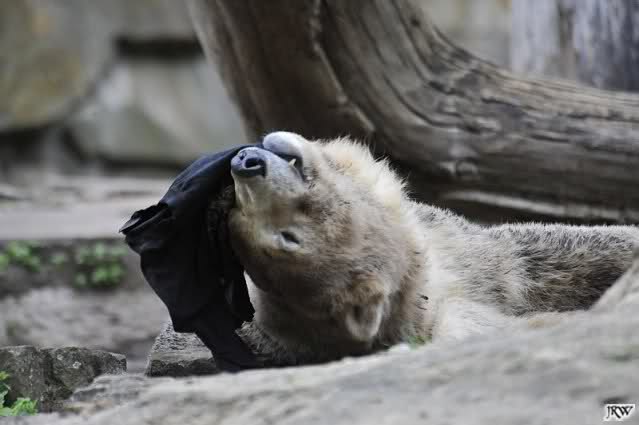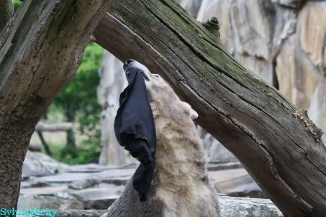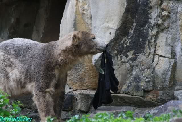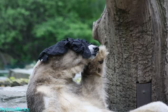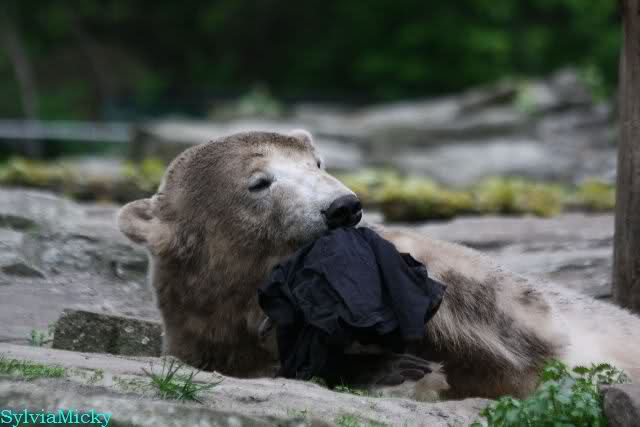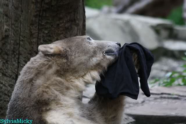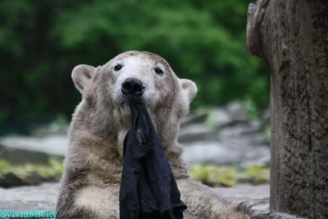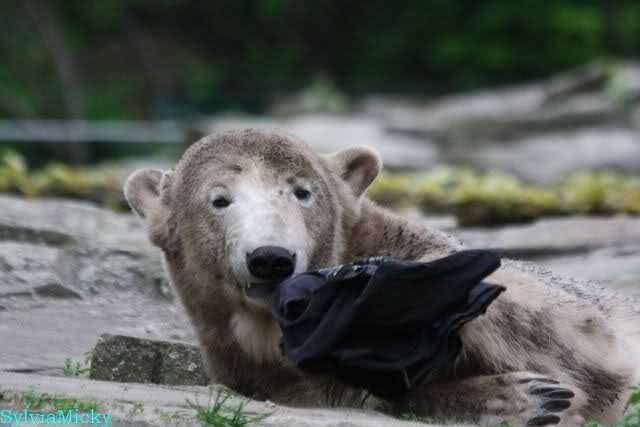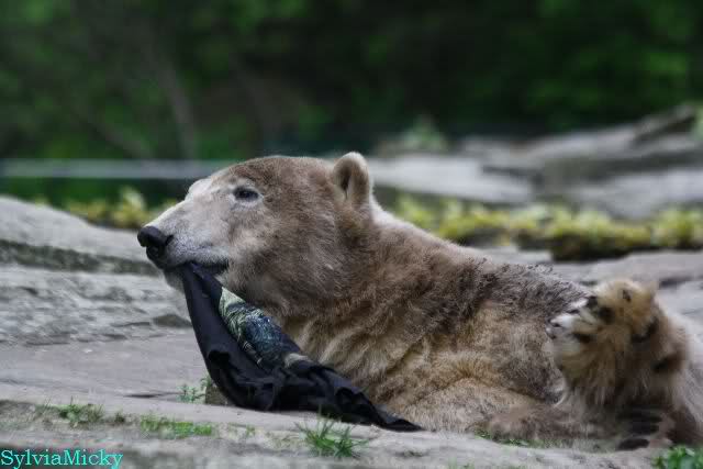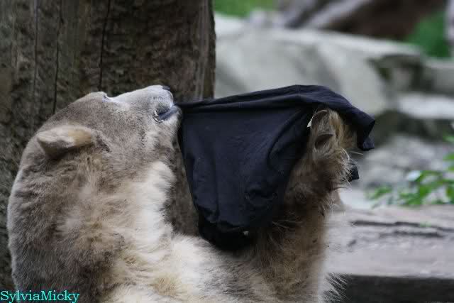 Danke für die neuen Fotos und für das Video vom Knut mit dem Schnuffelshirt. Wie sanft geht dieser doch schon große Bär mit dem T-Shirt um. Das ist inzwischen zum Highlight am Abend im Zoo geworden Einfach faszinierend.