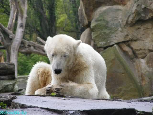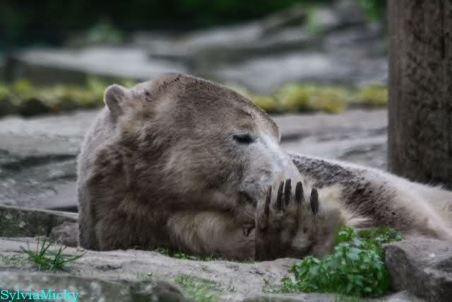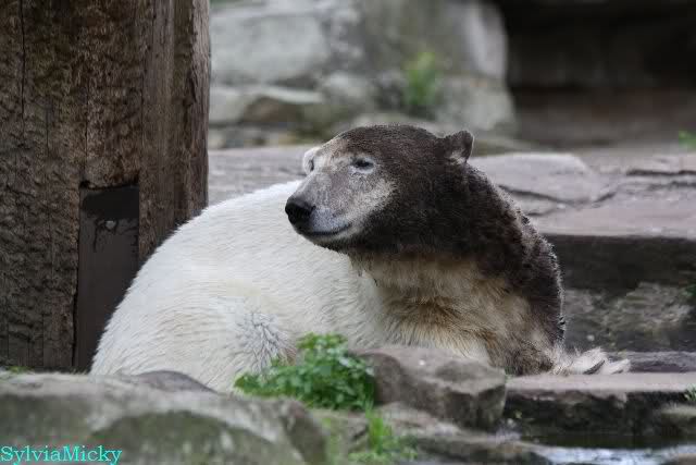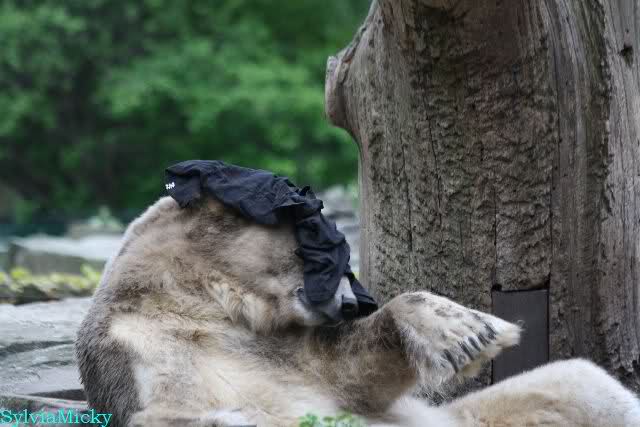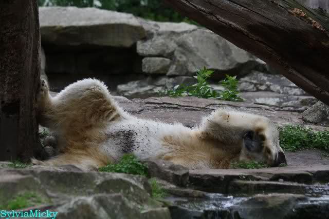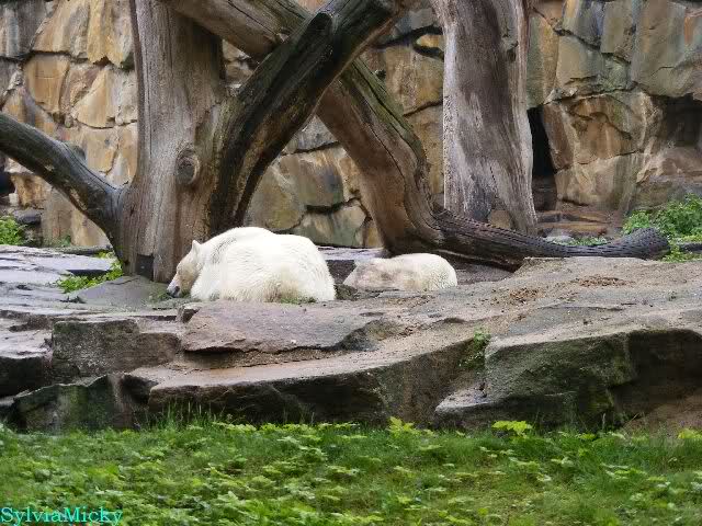 Gegen Mittag schliefen beide. Leider gab es wieder Besucher, die Knut wach rufen mußten. Das Ergebnis war, er lief. Dann sagten die gleichen Besucher: er läuft ja nur, armer Knut. Au weia.