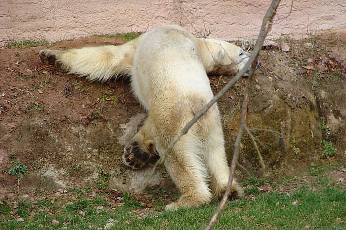 Und hier ein paar Fotos von Felix. Anfangs war er am Rumliegen und Dösen, aber dann hat er sich erstmal mit Hingabe von einem Eisbären in einen Dreckbären verwandelt