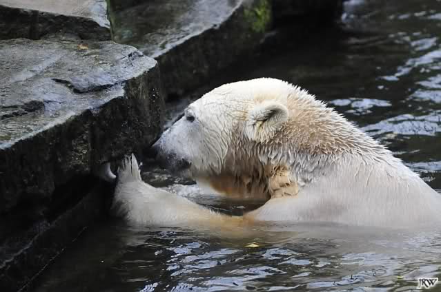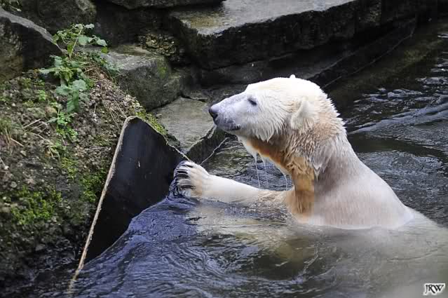 Hier nun meine Fotos vom heutigen Tag, so wie ich die beiden Bärenkids gesehen habe. Auch am Nachmittag wurde *geschnäuzelt*, nicht so viel wie am Vormittag, dafür spielte Knut ausgiebig im Wasser, wie in alten Zeiten.