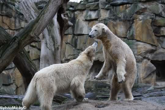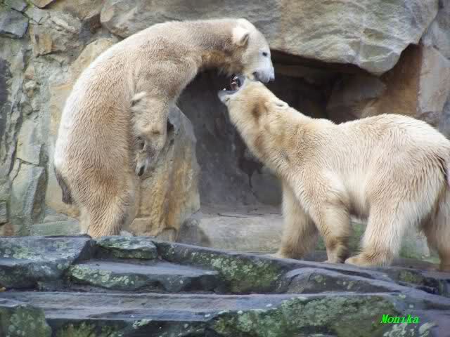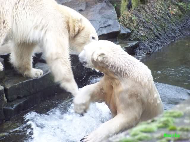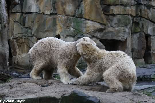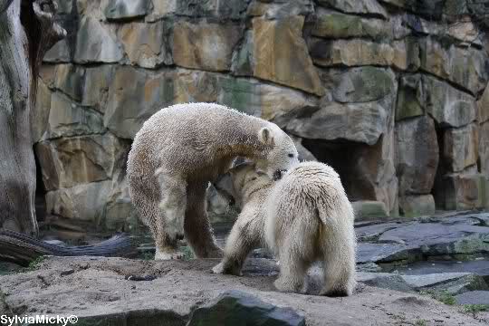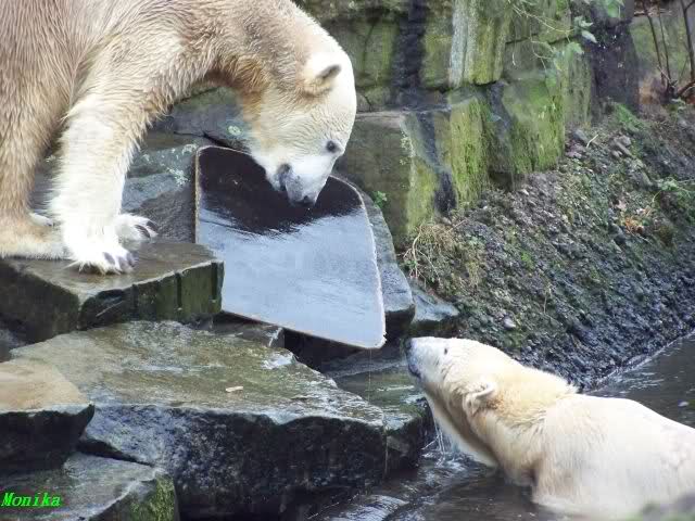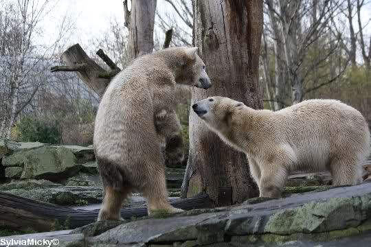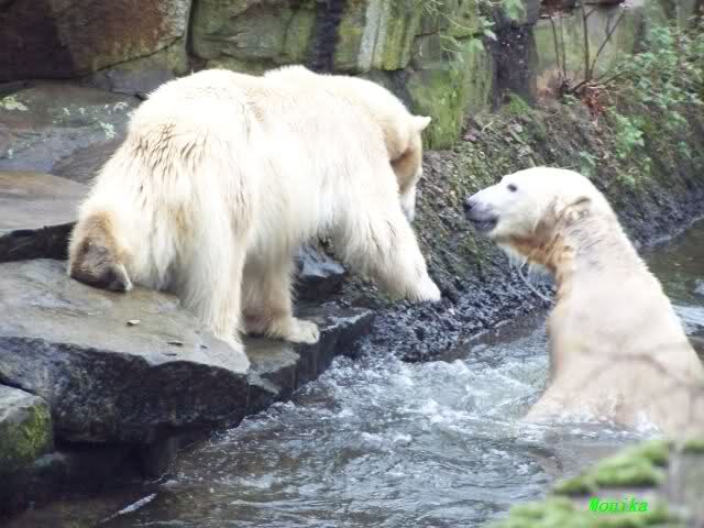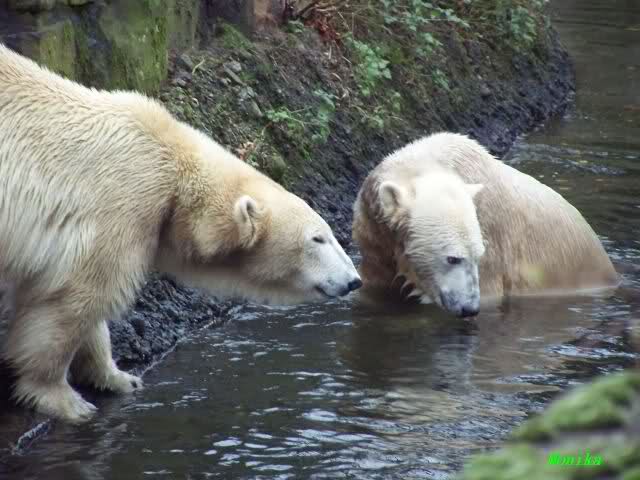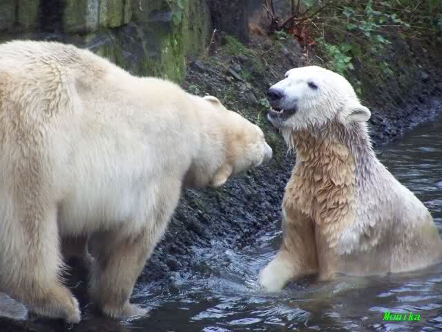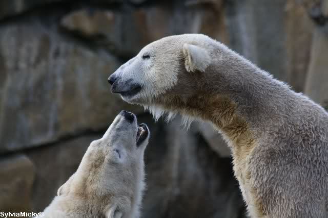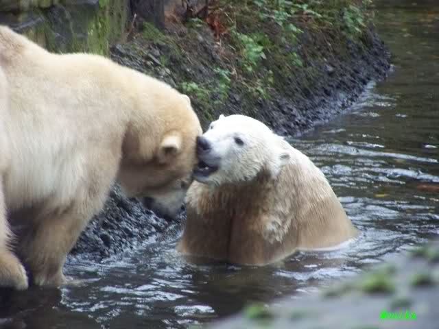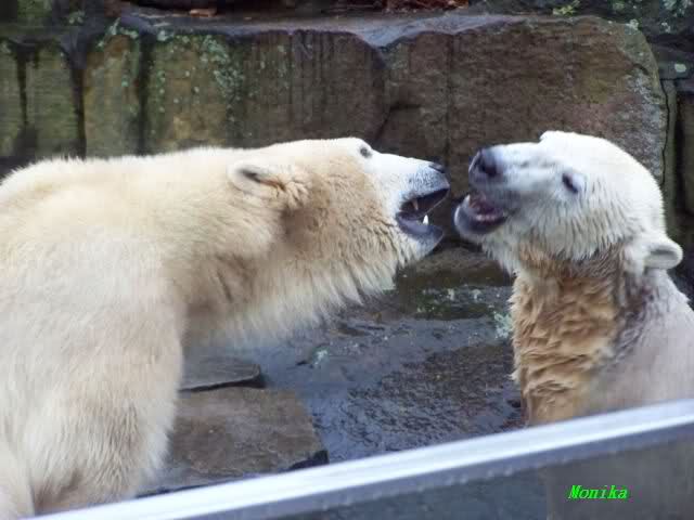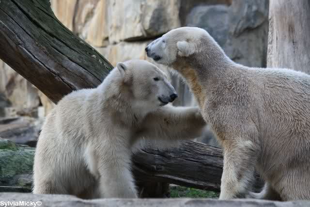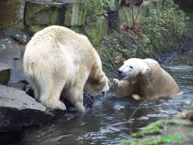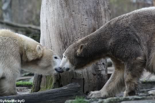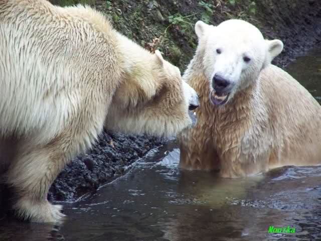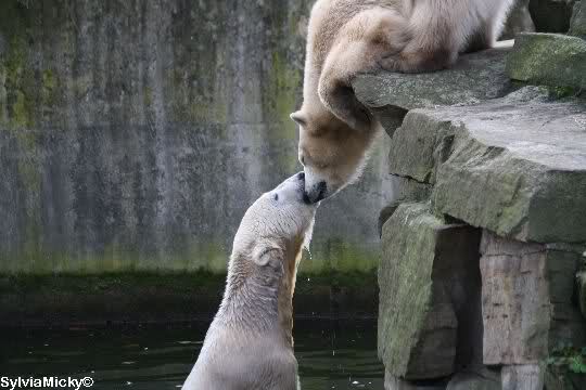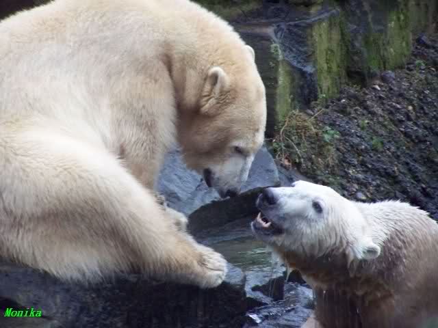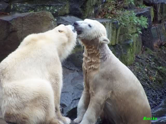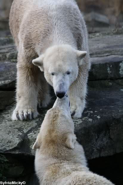 erst einmal ein grosses Danke an die Fototanten SylviaMicky und Monika sowie dem Fotoonkel Hartmuth für die wunderbaren Fotos der Eisbärenliebe. Monika, was das Verbot für Gianna angeht, Knut den Bart auszuzupfen, bin ch Deiner Meinug Er soll ihn noch eine Weile behalten.