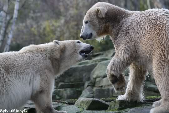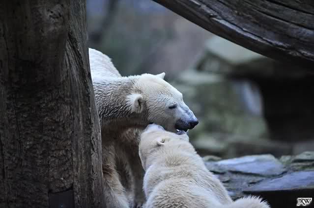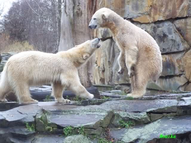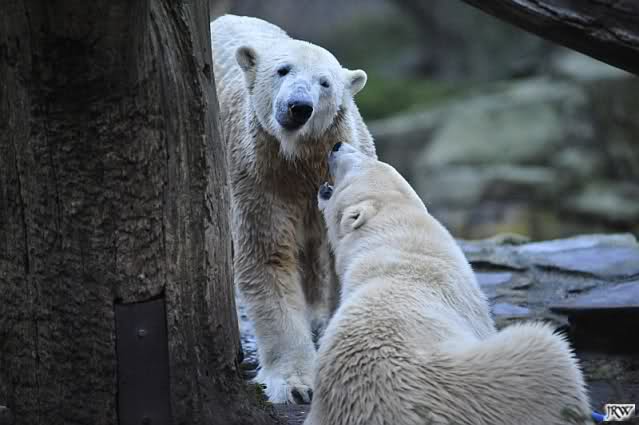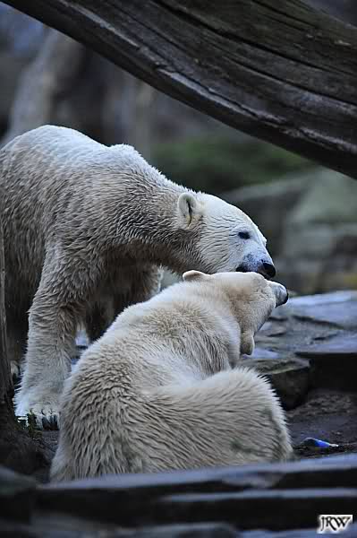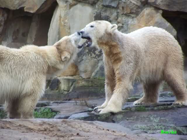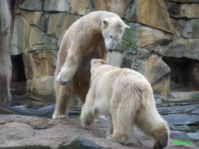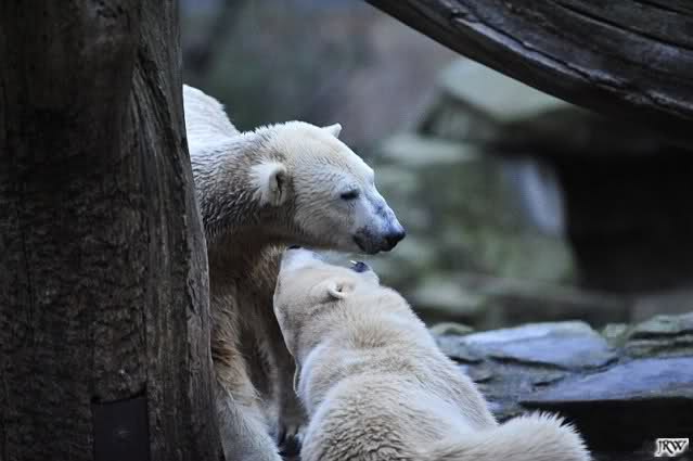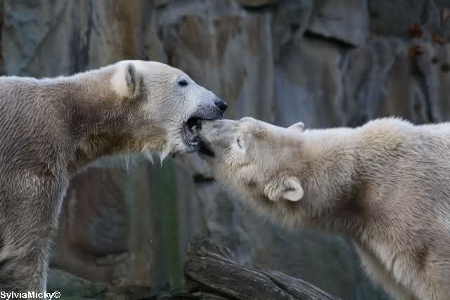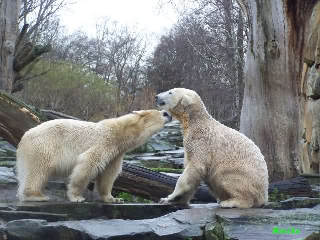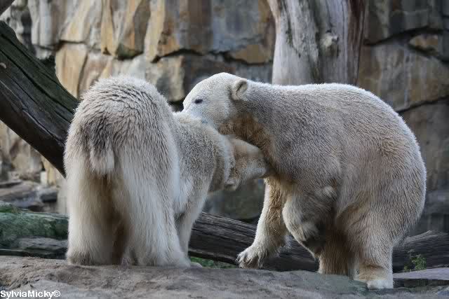 first i will say thank you to all fotographers of our polar bears in love. The series of Monika, Hartmuth and SylviaMicky were great. But one has been right: We had to forbidden Gianna, that she takes out Knutis beard. He need him for a long time now.