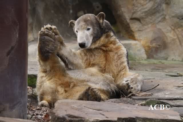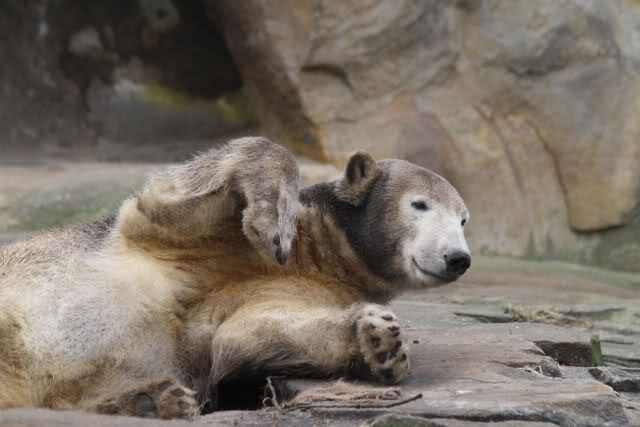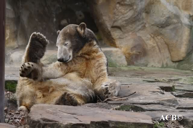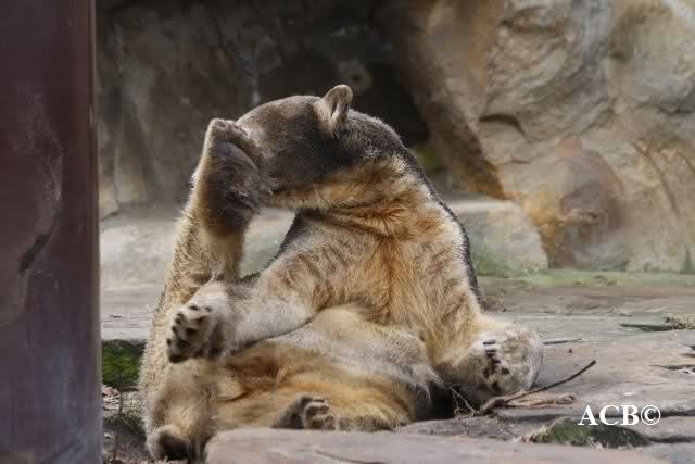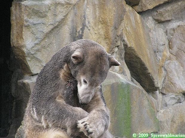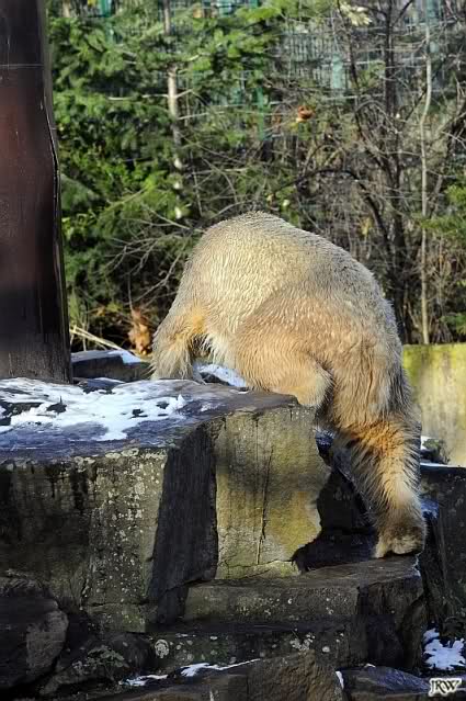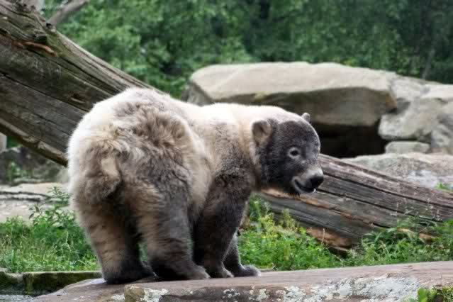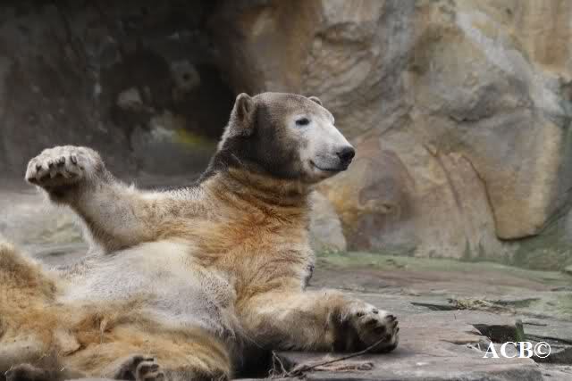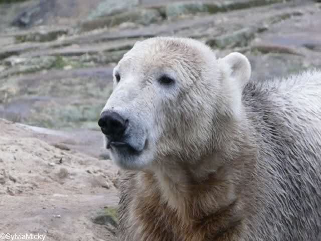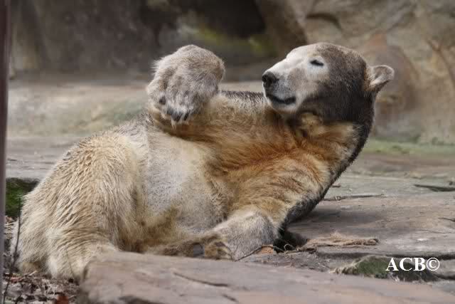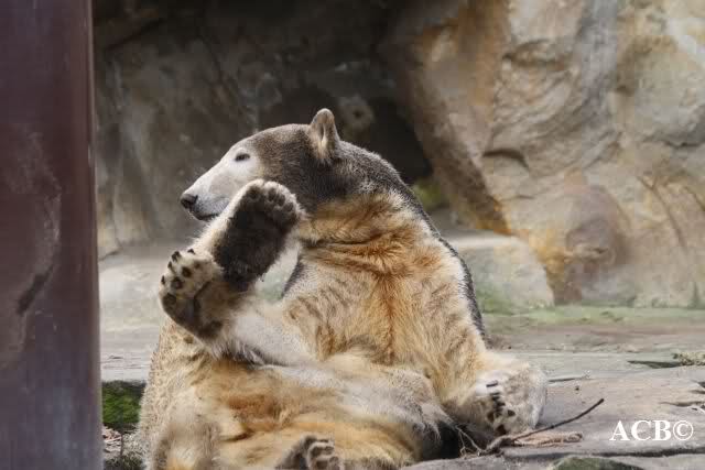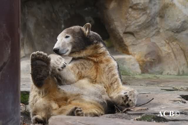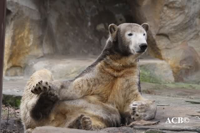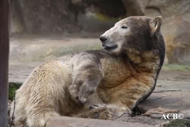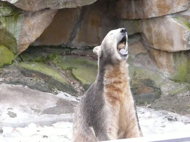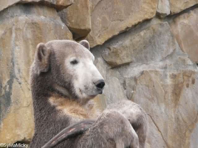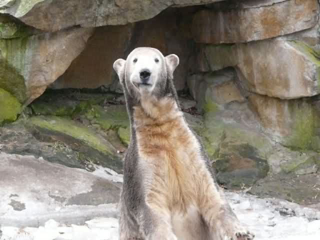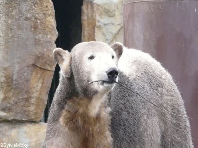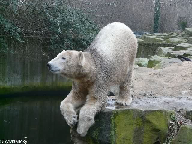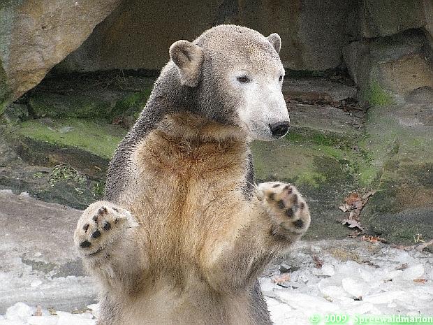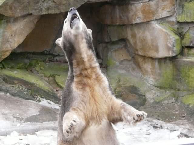 Heute war ich wieder im Zoo und leider wieder auf den letzten Drücker. Weil ich die Eisbärenfütterung nicht verpassen wollte, ging ich gar nicht erst zu Knut, sondern direkt zu den großen Eisbären, an den Malaien vorbei.