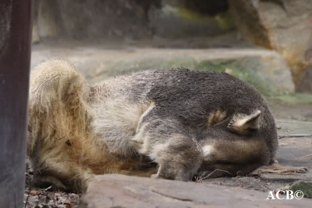 Danach ging ich zu den Affen. Die Totenkopfäffchen sind immer niedlich. Eines der Kleinen spielte ständig mit seinem Schwanz und wirbelte ihn wie ein Lasso herum. Das ist ja auch ein zu schönes Spielzeug und dann auch noch aus Naturmaterial! Die kleine Satu ärgerte die Großen. Aber ich glaube, die hat Narrenfreiheit und darf das. Bei den Bonobos herrschte ein wenig Eifersucht. Zumindest bei dem Kleinen. Seine Mutter ließ sich nämlich von einer Freundin das Fell untersuchen. Der Kleine versuchte ständig, sich da irgendwie zwischen zu drängen. Aber die beiden Damen ließen sich nicht stören. Schließlich hatte die Mutter ein Einsehen und nahm den kleinen Quälgeist in den Arm.
